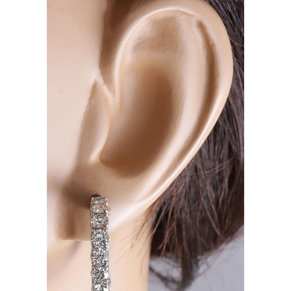 3.40 CTW Natural Diamond Hoop Earrings 18K Solid White Gold