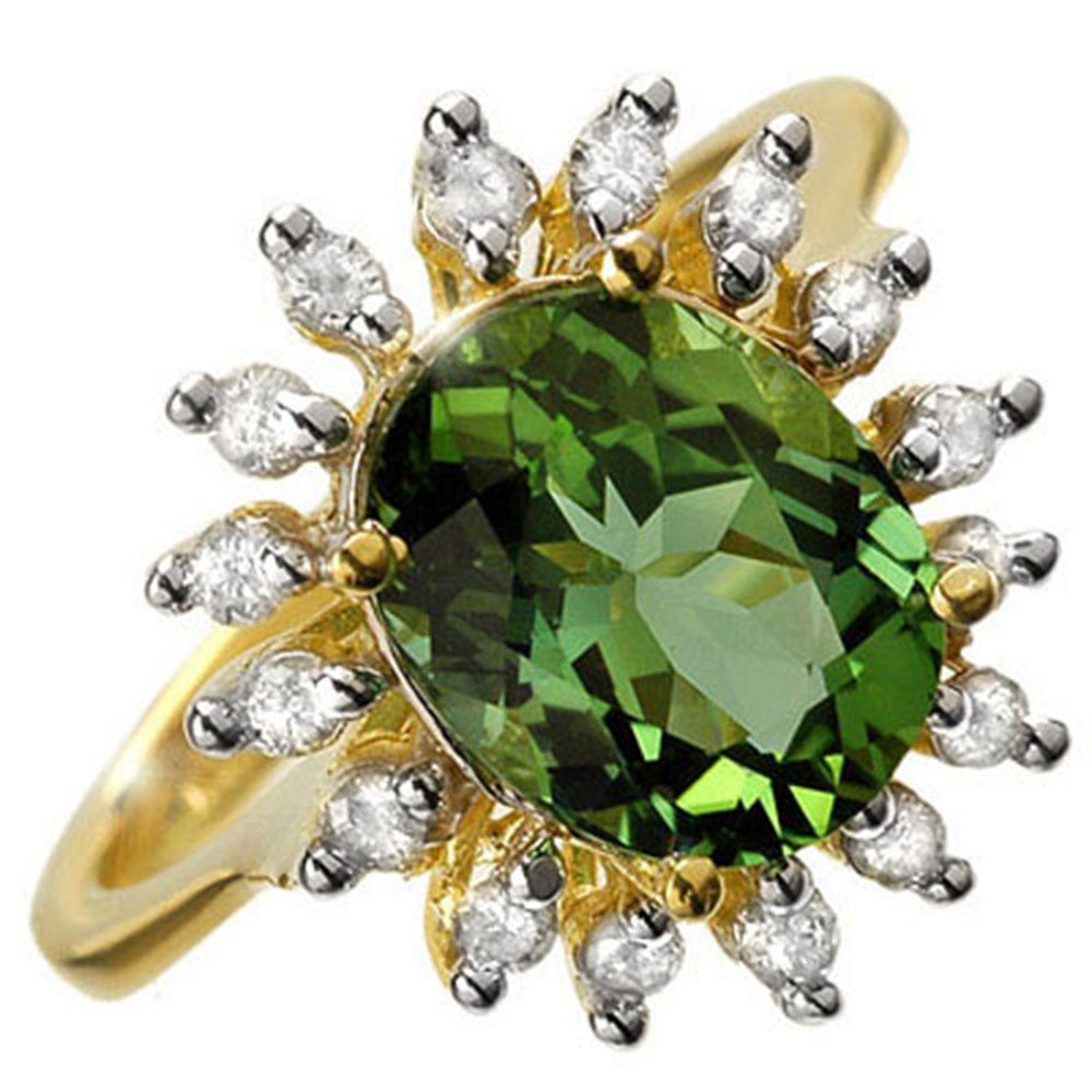 REF-78A9N - SKU: 10800 ---- 3.40 ctw Green Tourmaline & Diamond Ring 10k Yellow Gold