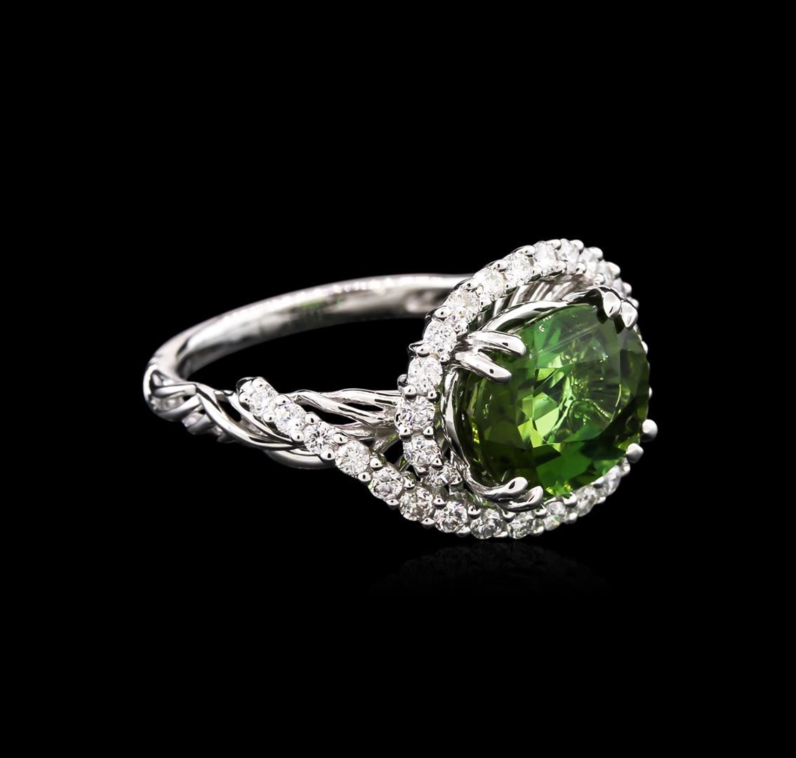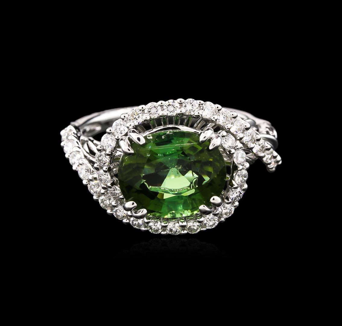 One ring featuring: 18KT white gold weighing 4.90 grams containing one green tourmaline center stone with a total weight of 3.40ct and diamonds with a total weight of 0.46ct.