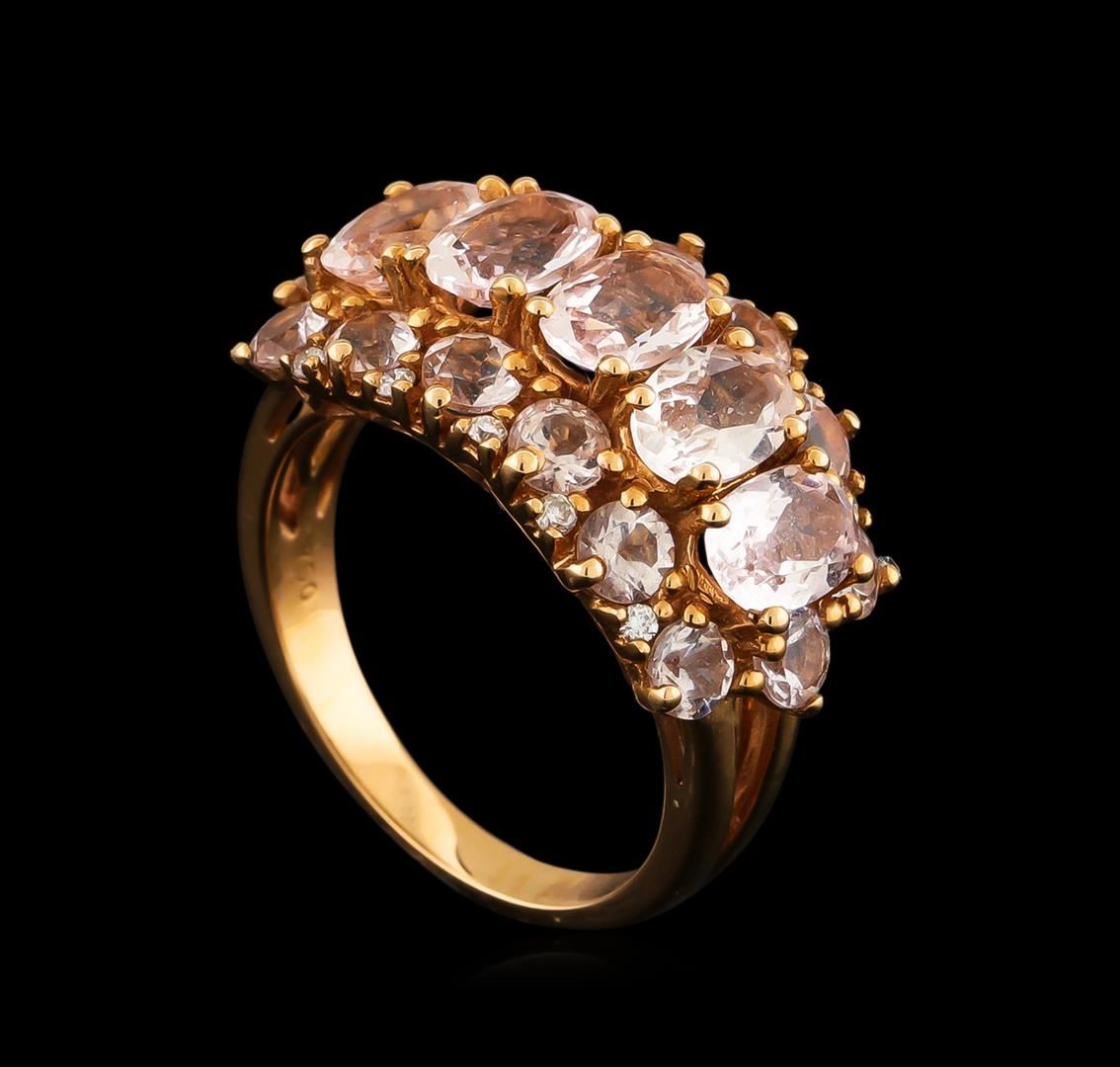 One ring featuring: 18KT rose gold weighing 5.01 grams containing 19 morganites with a total weight of 3.40ct and round diamonds.