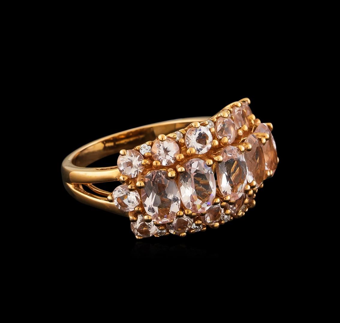 One ring featuring: 18KT rose gold weighing 5.01 grams containing 19 morganites with a total weight of 3.40ct and round diamonds.
