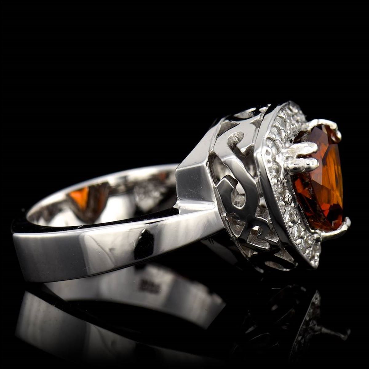 18K W/G NATURAL CEYLON YELLOW SAPPHIRE RING :10.33GRAM /MALAYA GARNET :3.40CT/DIAMOND RD: 1.00CT APPROX/#GVR1286/MALAYA GARNET IS THE VERY RARE GARNET IN THE GARNET FAMILY. VERY HARD TO FIND THIS KIND OF COLOR AND QULAITY