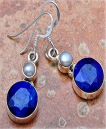 3.40g Earring of Sapphire and Pearl Sterling Silver