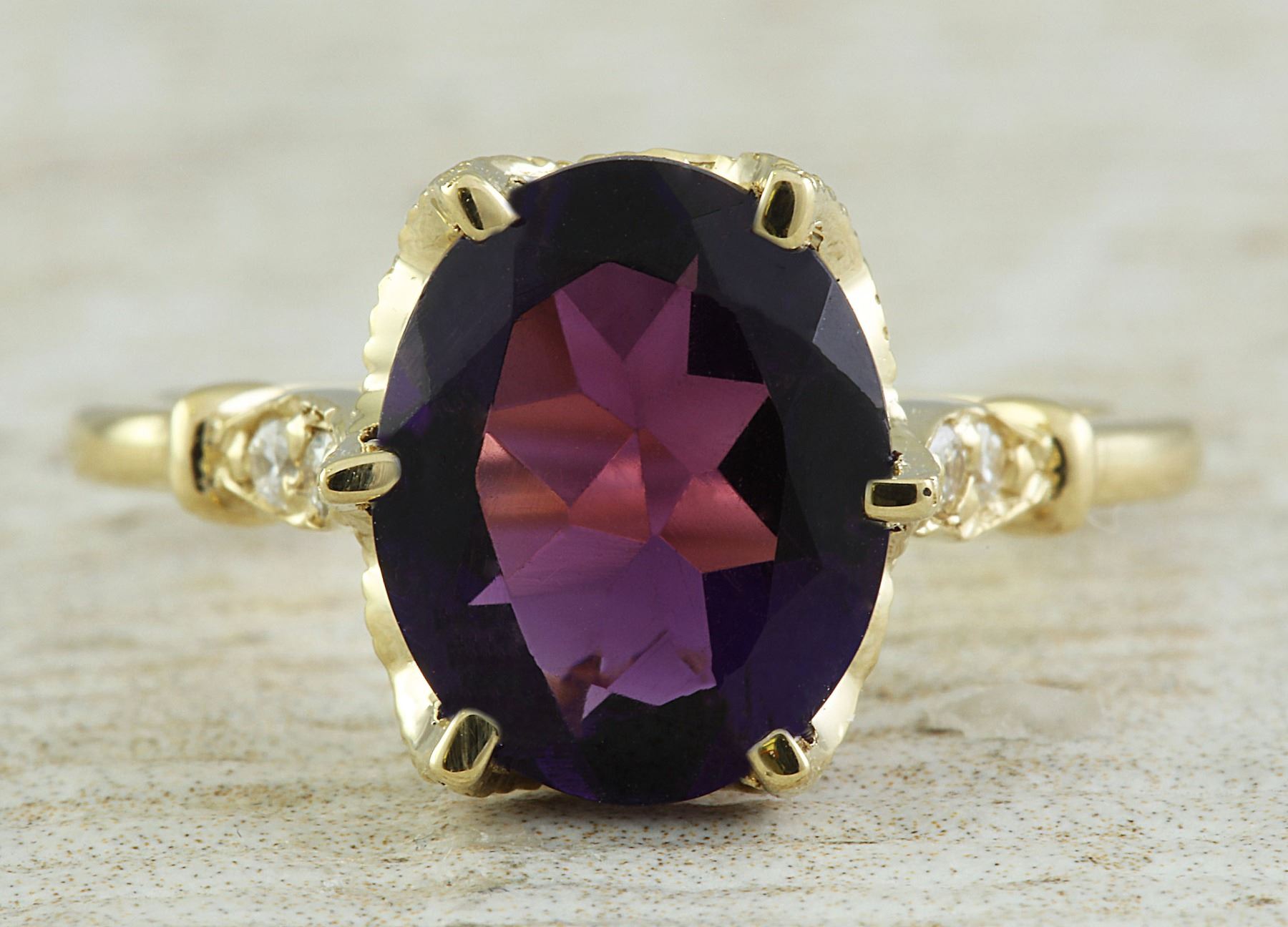 3.41 CTW Amethyst 14K Yellow Gold Diamond Ring