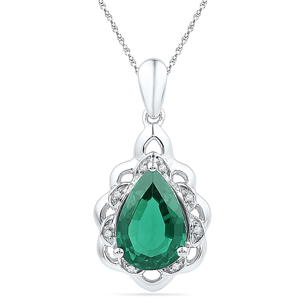 REF-22W4K- SKU: GD100771 ---- 3.41 CTW Pear Created Emerald Solitaire Diamond Pendant 10KT White Gold