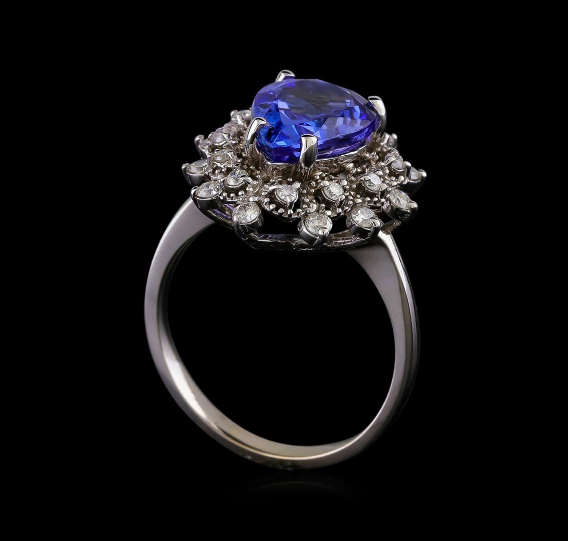 One ring featuring: 14KT white gold weighing 3.85 grams containing one tanzanite weighing 3.42ct and diamonds weighing 0.43ctw.