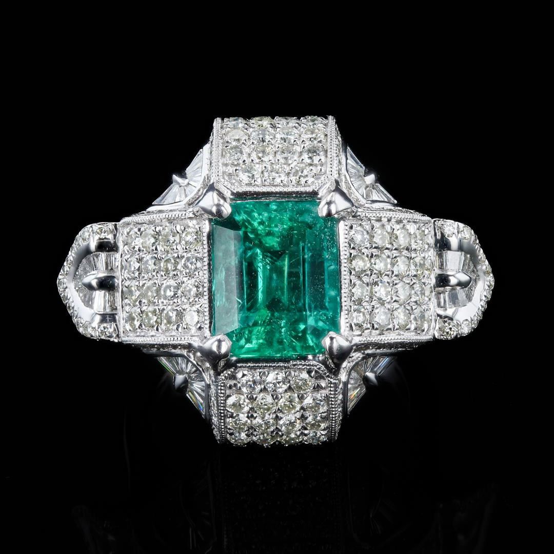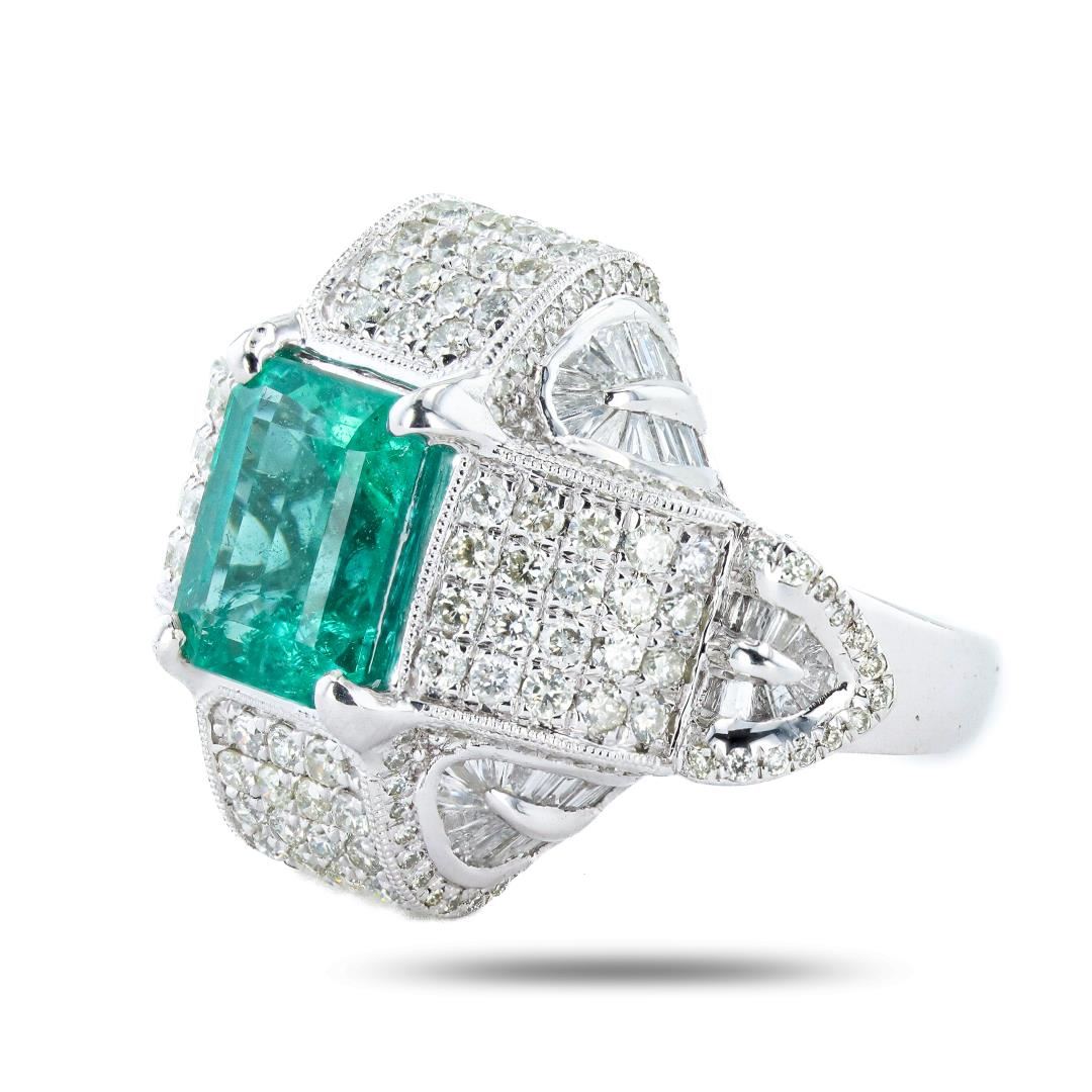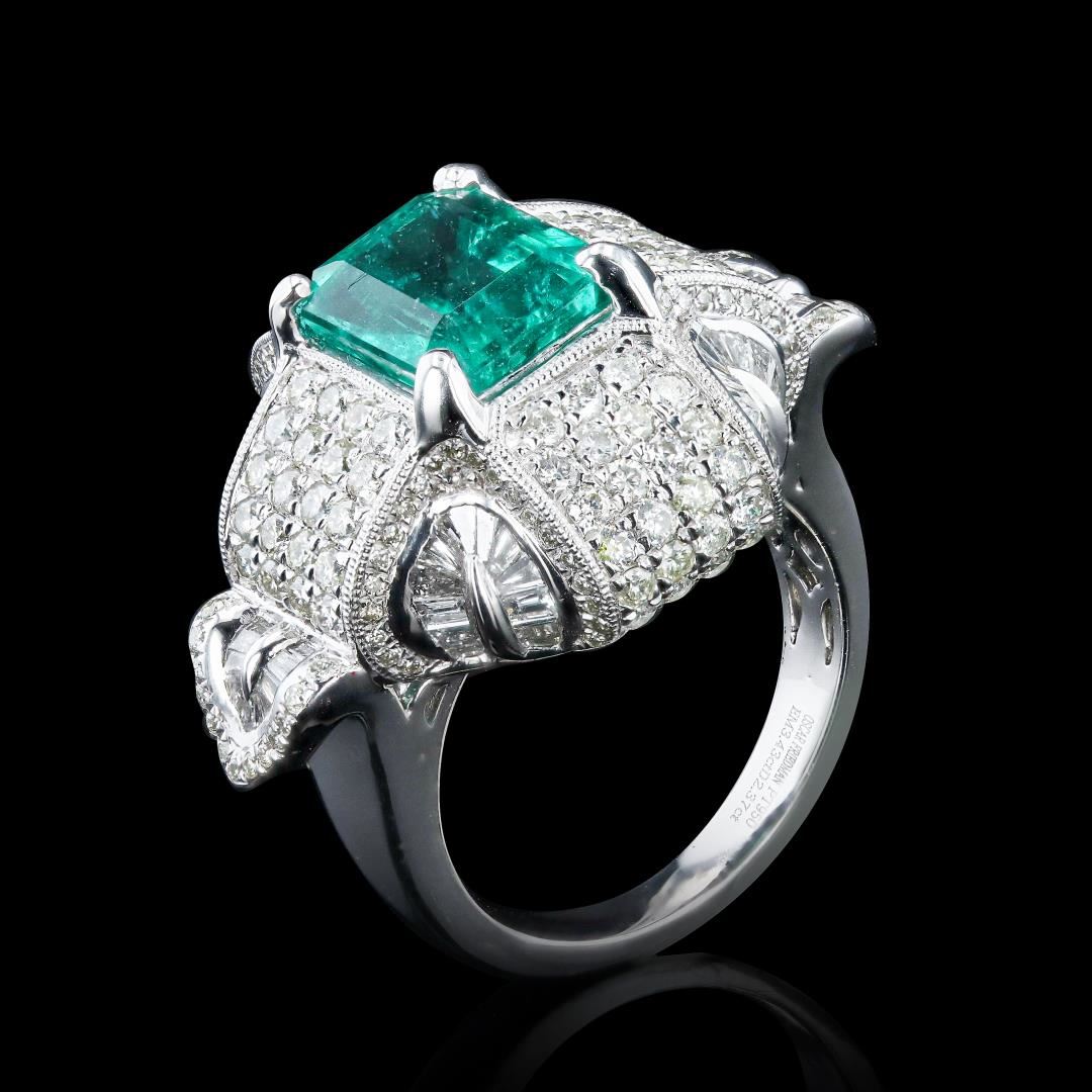 3.43 ctw Emerald and 2.37 ctw Diamond Platinum Ring