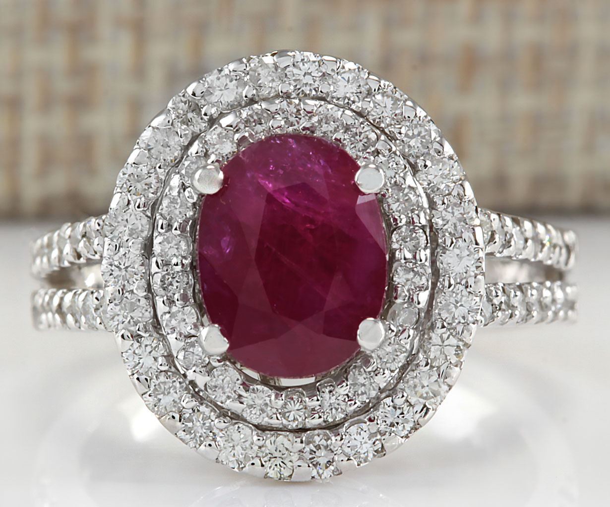 3.44 CTW Natural Ruby And Diamond Ring 14K Solid White Gold