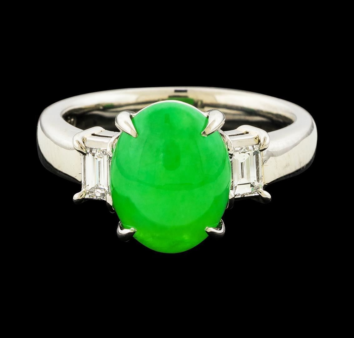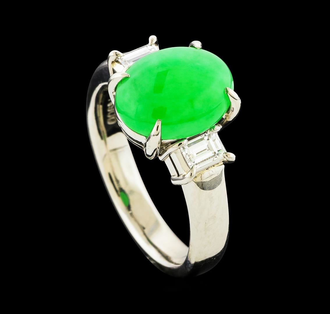 One ring featuring: Platinum containing Jade with a total weight of 3.44ct and Diamonds with a total weight of 0.32ct. Total Weight of Ring: 8.8 grams.