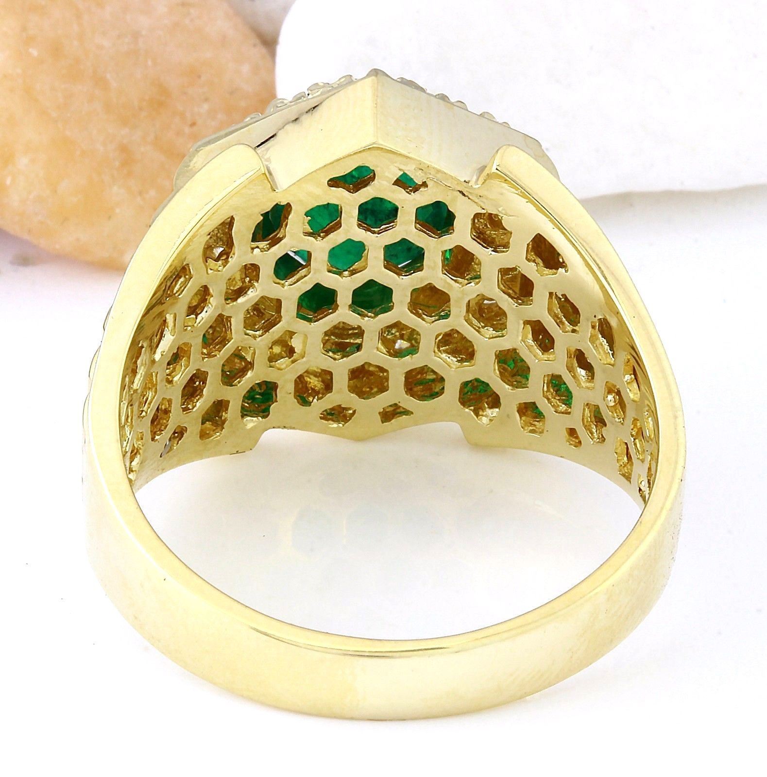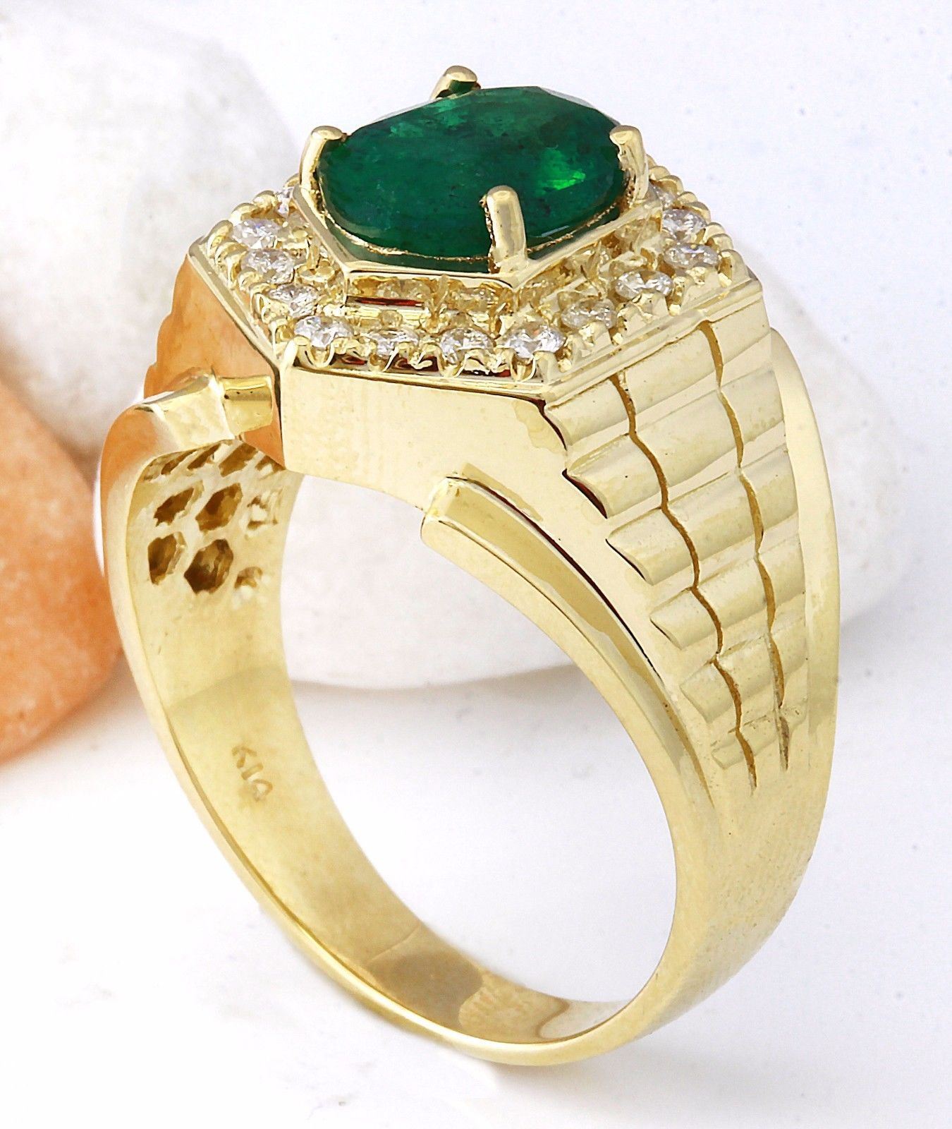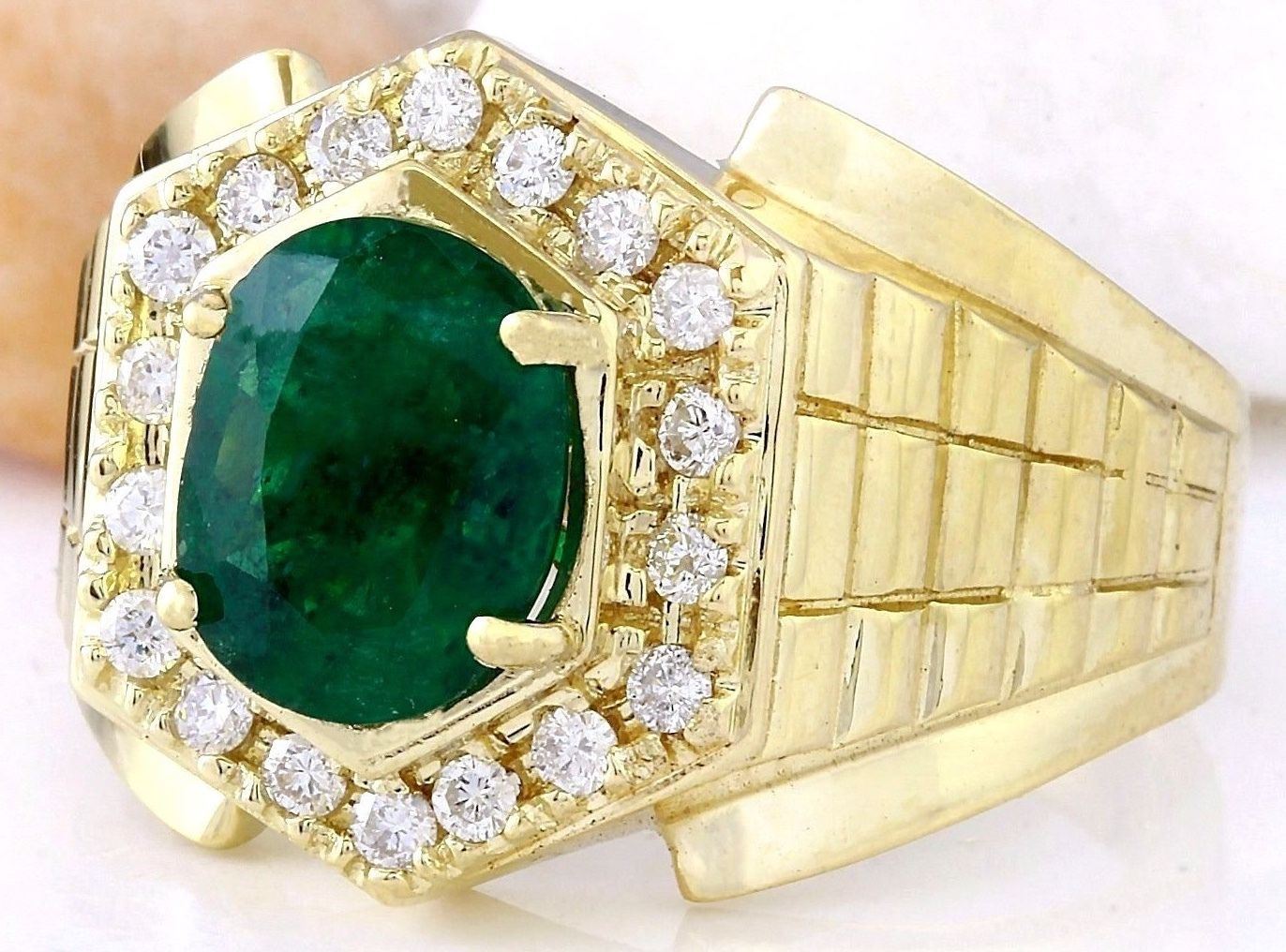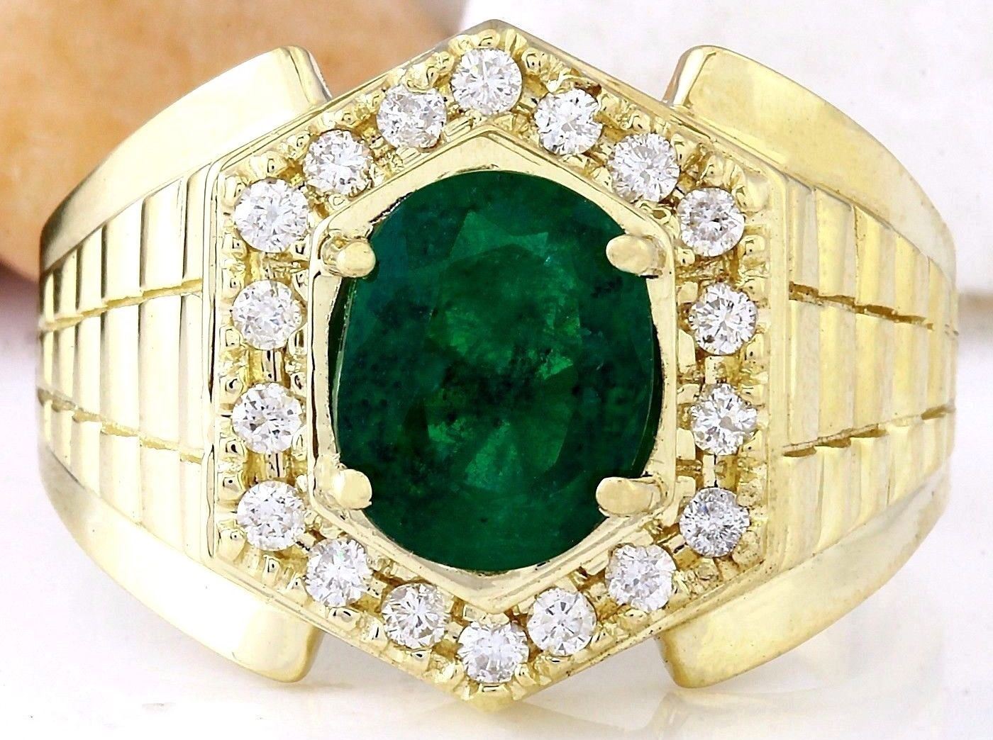 3.45 Carat Natural Emerald 18K Solid Yellow Gold Diamond Ring