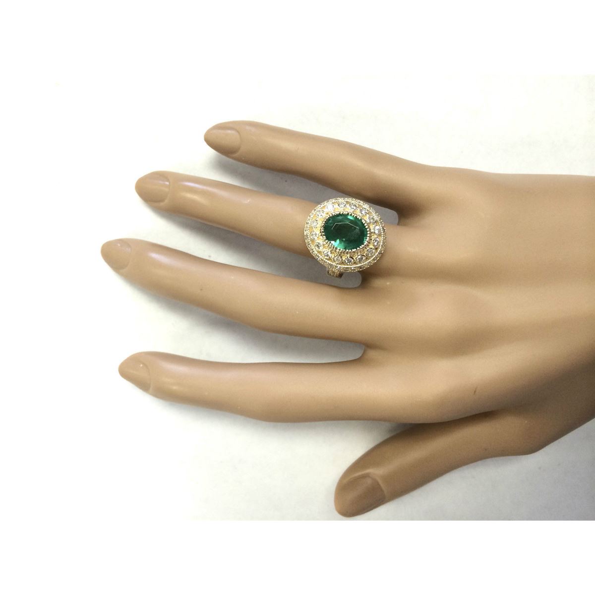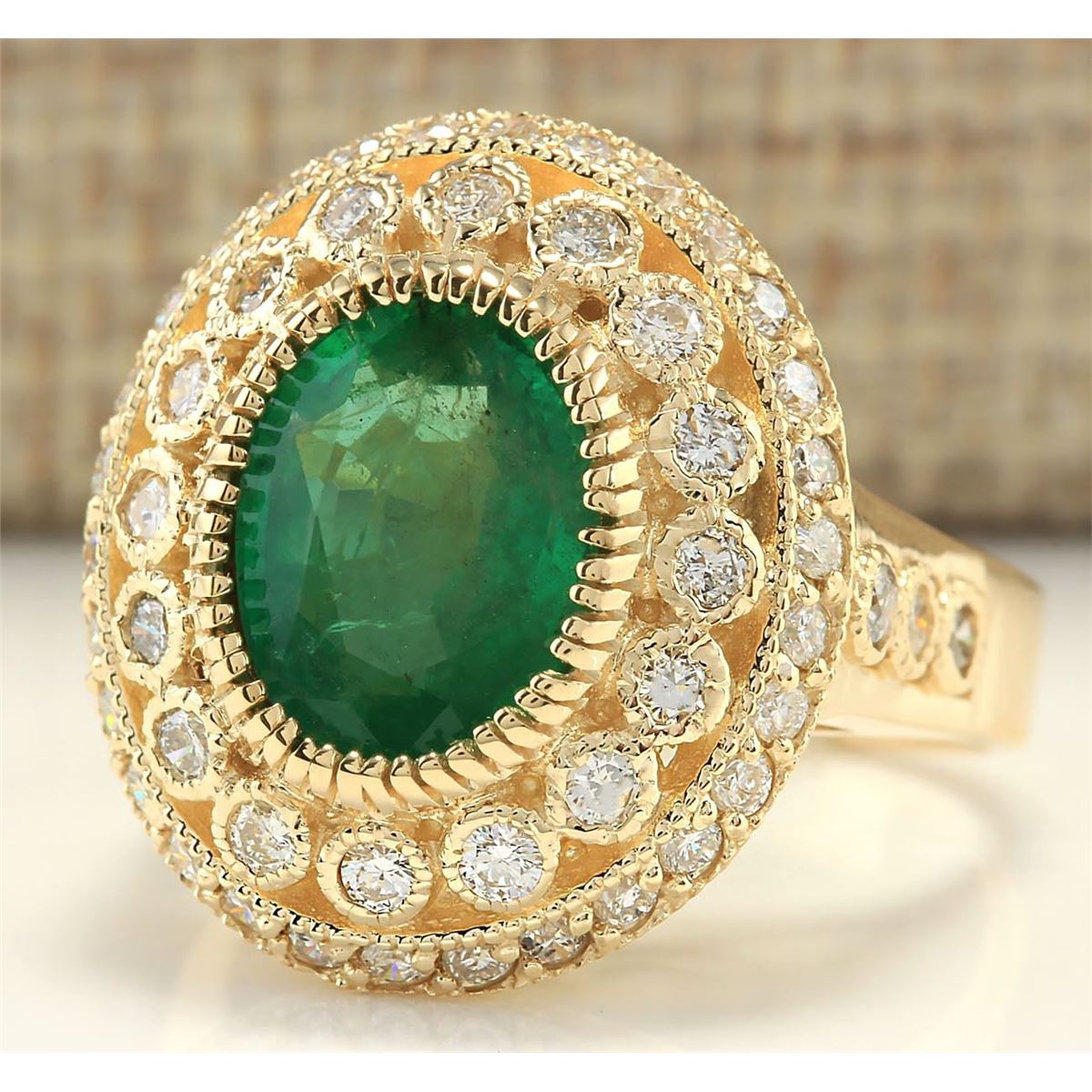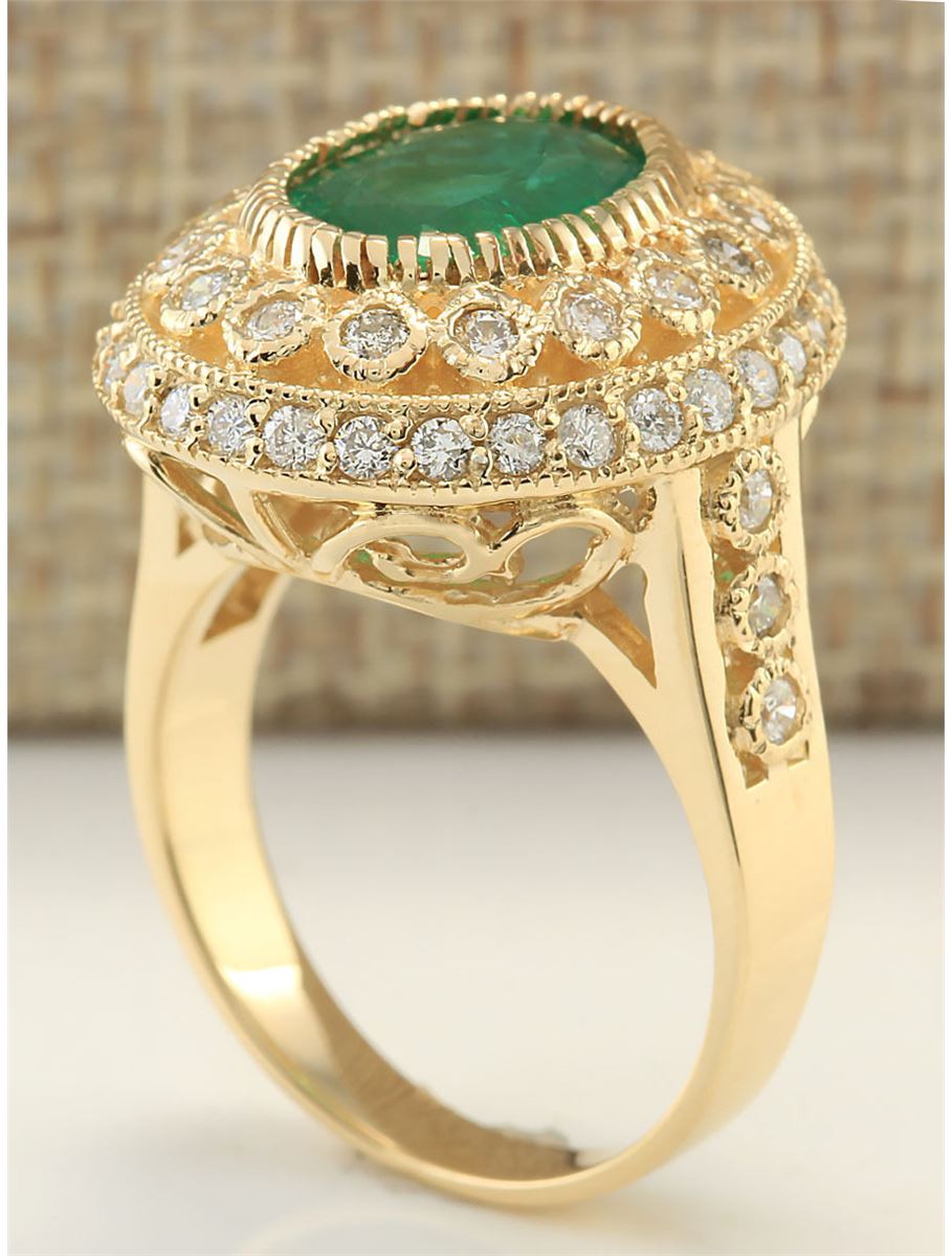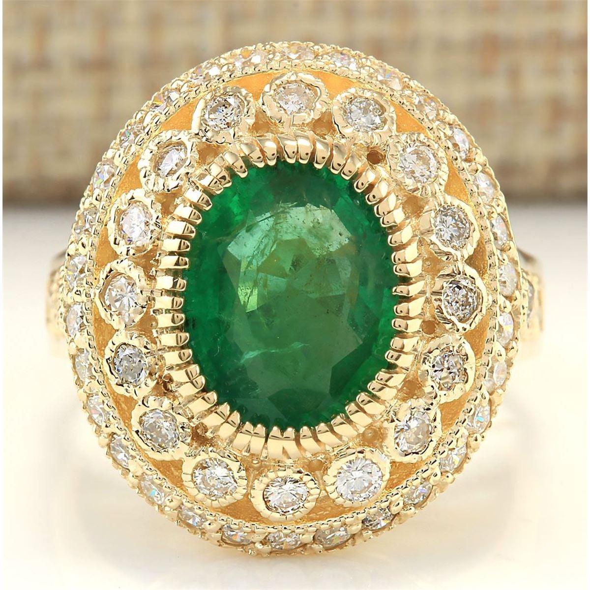 Stamped: 14K Ring Size: 6.5 Total Ring Weight: 8.6 Grams Diamond Weight: Total natural diamond weight is 1.00carat. SI1-SI2 clarity / G-H color Main Stone Color: Green Gemstone Weight: Total Natural Emerald Weight is 2.45ctw (Measures: 11.00x9.80mm) Face Measures: 19.35x17.70mm SKU: [703771]