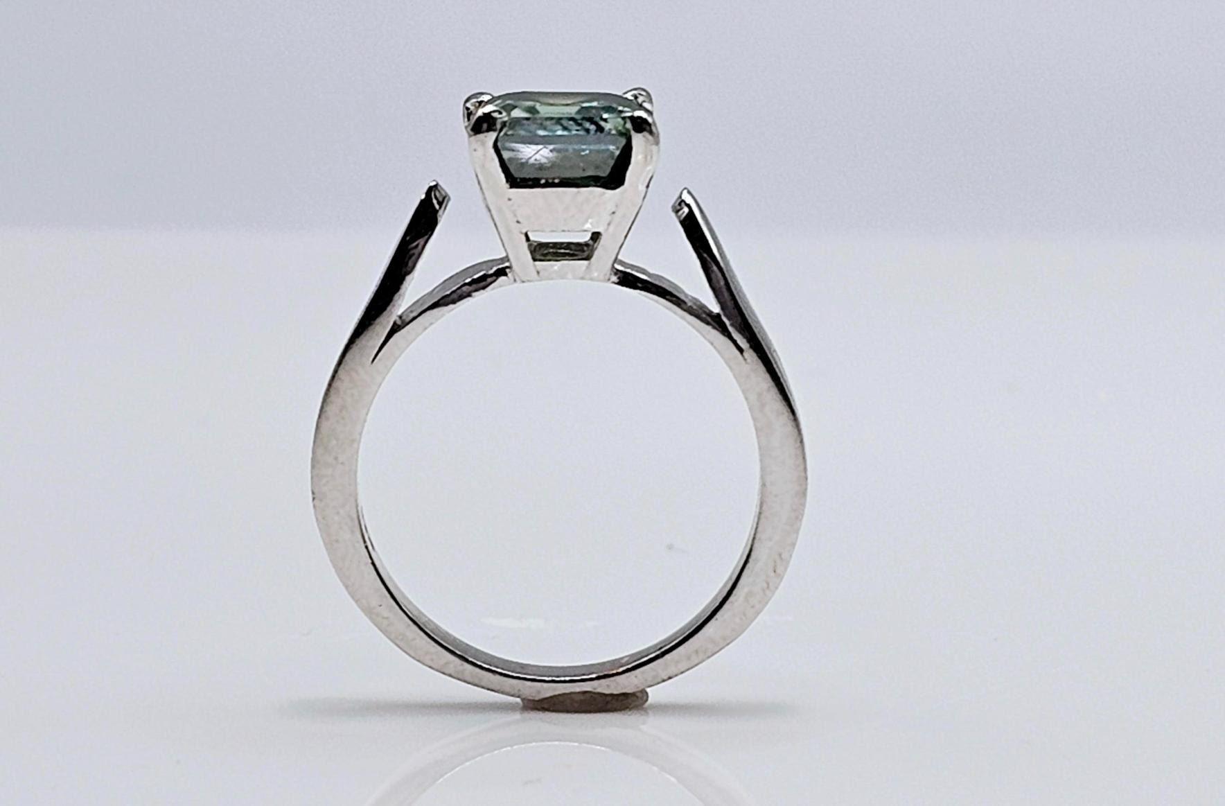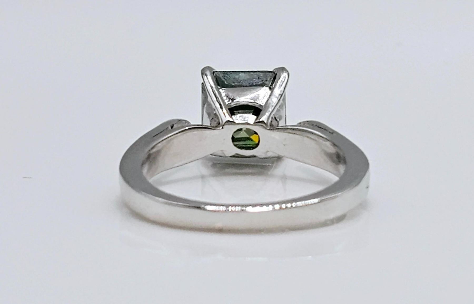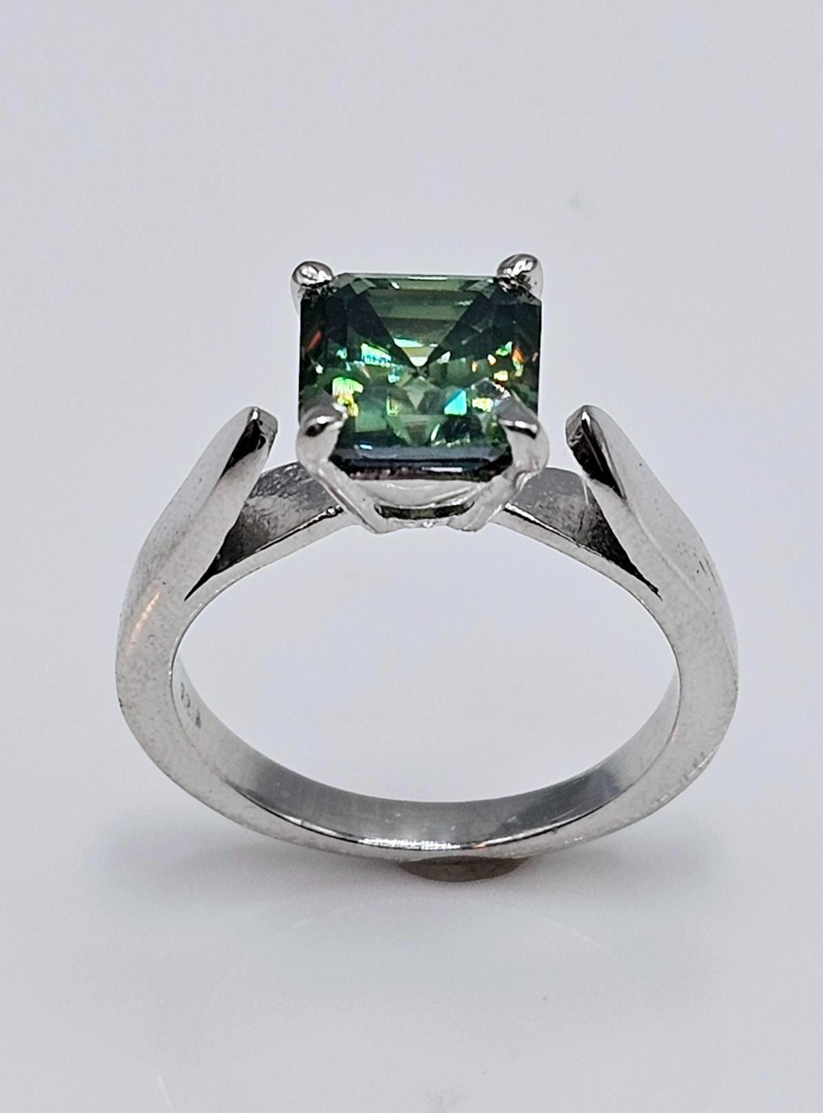 This Russian 3.45 Ct Lab Simulated Color Change Alexandrite is a Eye-Clean Fine Asscher Cut Measuring 9.2 x 9.2 mm. The color spectrum ranges from beautiful greens, blues and pink depending on the light and the angle viewed. This spectacular High End Centerstone is Mounted in Tri-Layered 14 Kt White Gold over Solid .925 Sterling Silver with to give the ring its high polish and shine. It measures 8.5 on the Mohs hardness scale. It is also Earth Friendly and Conflict Free. Ring size 7. The total weight of this ring is 3.3 grams. The Asscher Cut is often referred to as the "Classic Vintage Contemporary Cut " It is very classy, elegant and it's timeless beauty is just one the reasons it is such a popular, requested, and sought-after Cut. Don't miss this beauty!!!