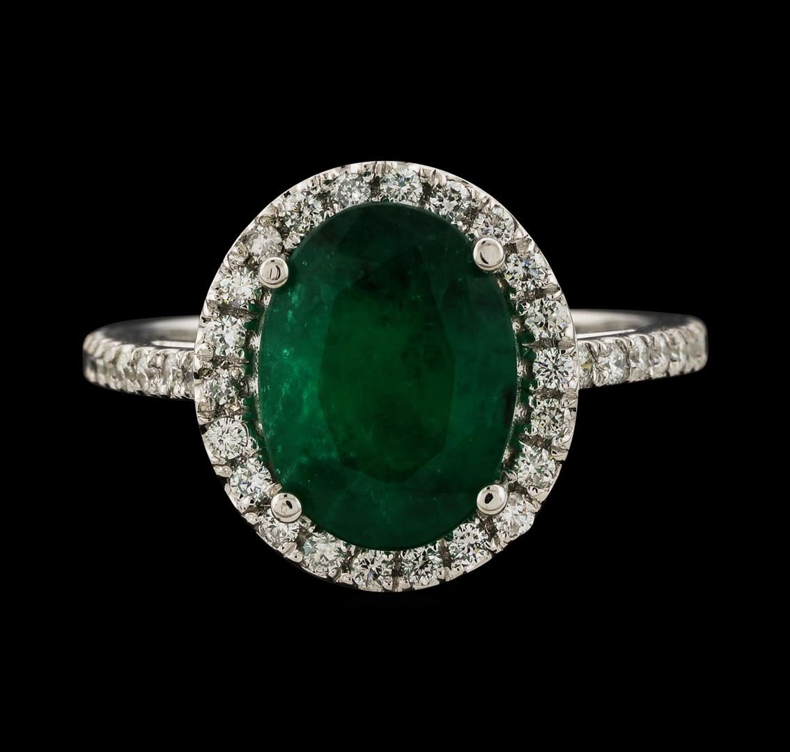 One Ring : 14KT white gold weighing 3.23gm containing one emerald with a total weight of 3.45ct and side diamonds weighing 0.46ctw.