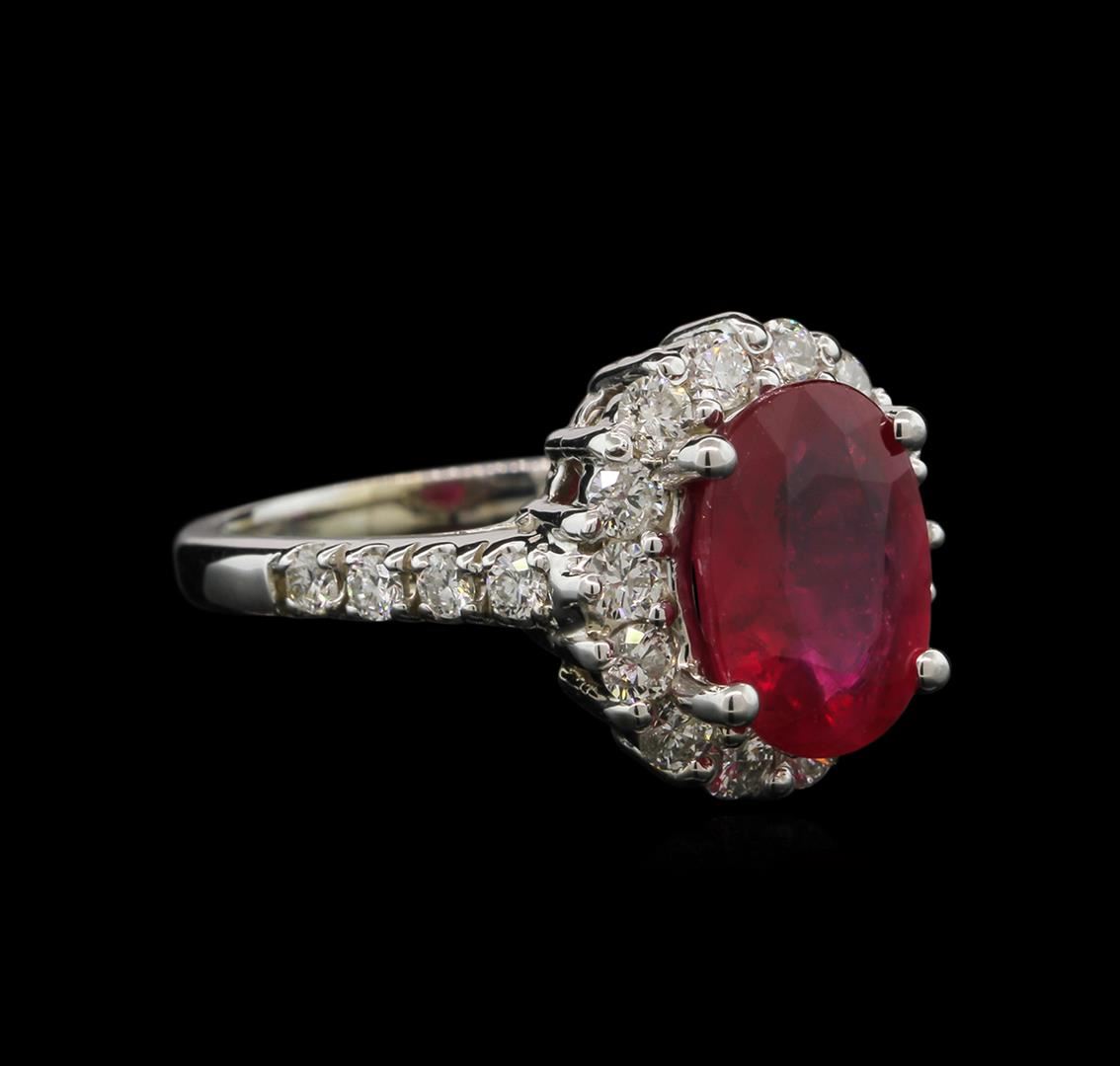 One ring featuring: 14KT white gold weighing 5.30 grams containing one ruby center stone with a total weight of 3.45ct and 22 diamonds with a total weight of 0.99ct.