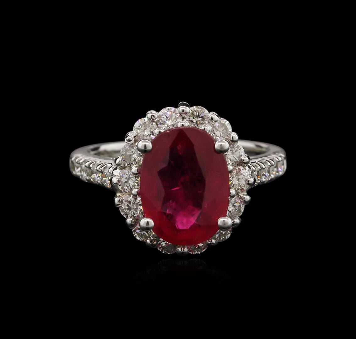 One ring featuring: 14KT white gold weighing 5.30 grams containing one ruby center stone with a total weight of 3.45ct and 22 diamonds with a total weight of 0.99ct.