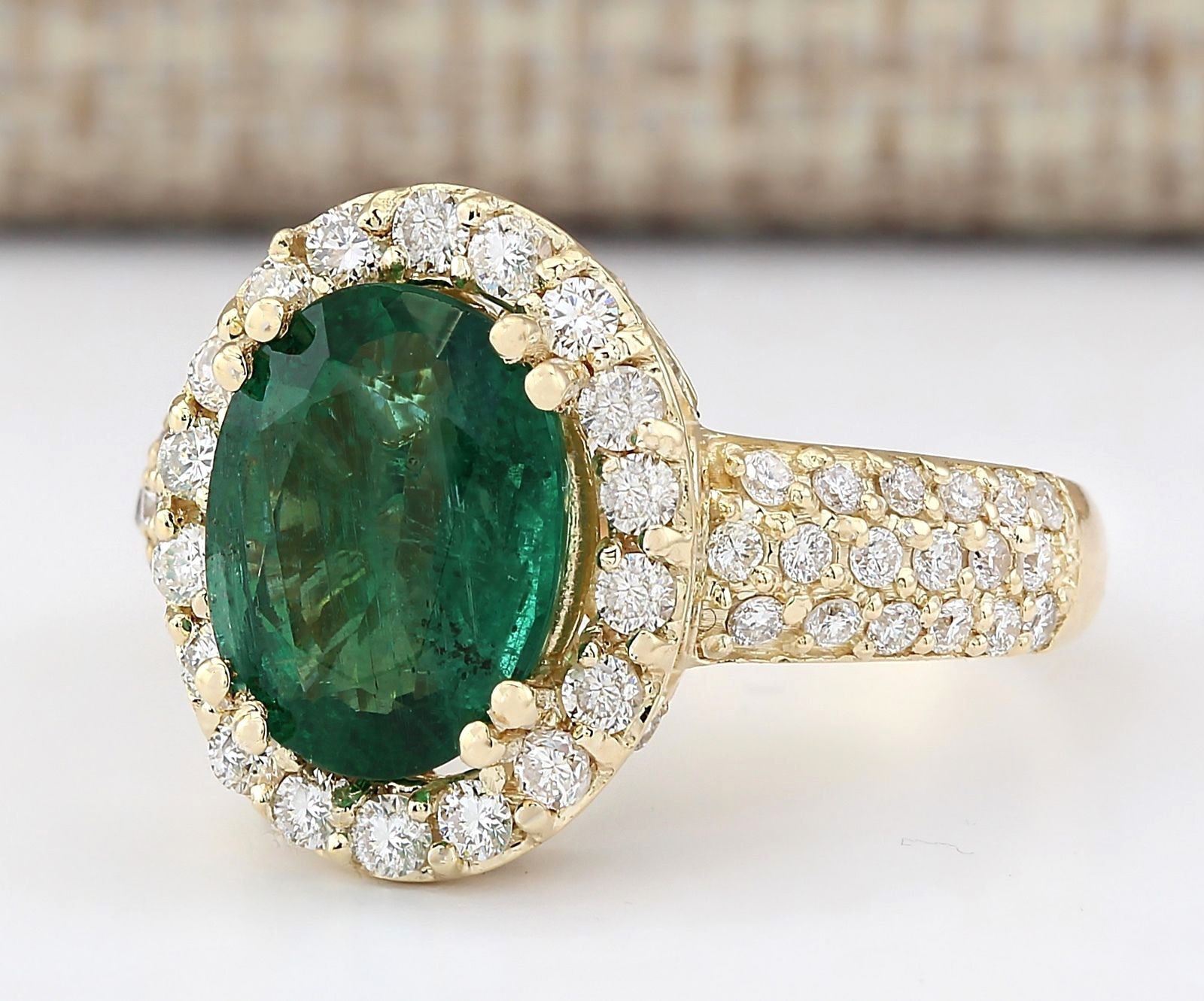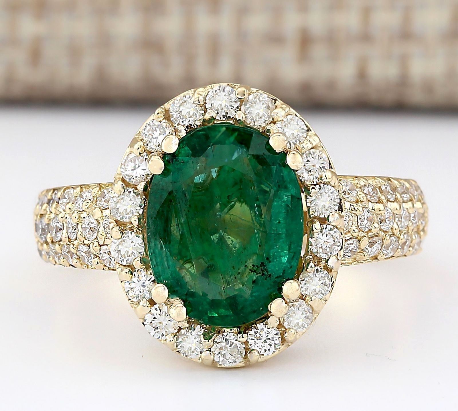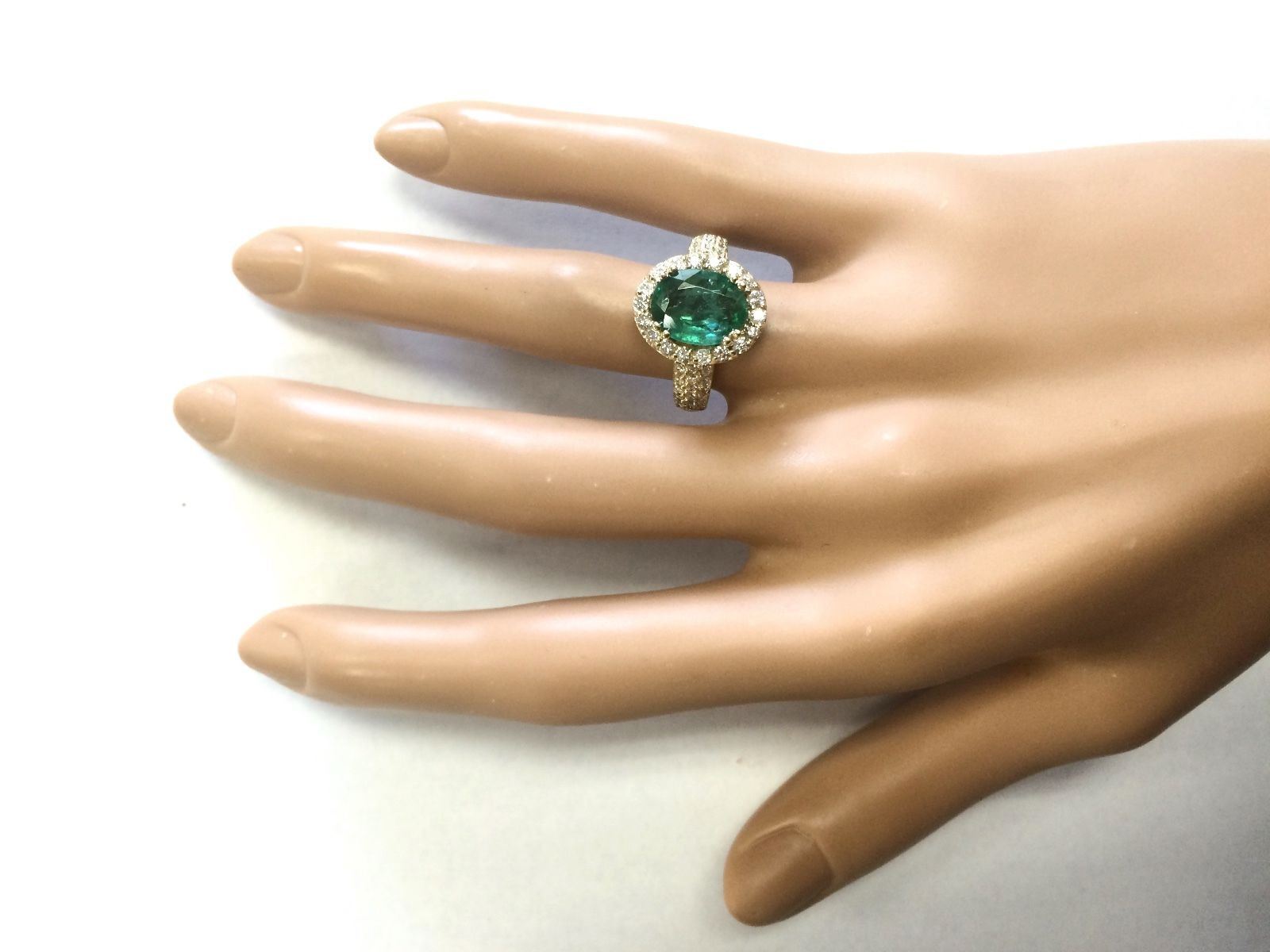3.46 CTW Natural Emerald And Diamond Ring In 18K Yellow Gold