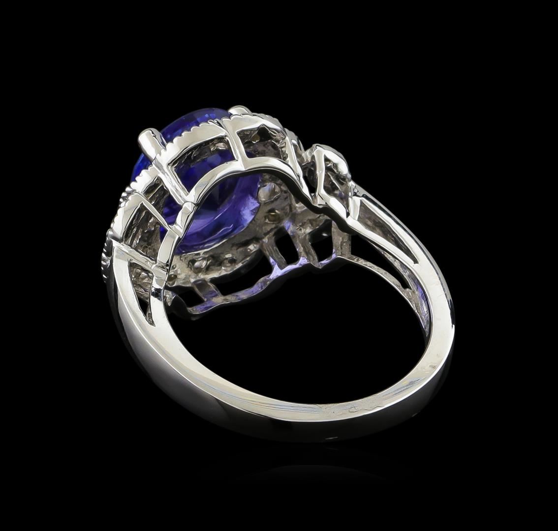 One Ring featuring: 14KT White Gold weighing 6.25 grams containing one Tanzanite center stone with a total weight of 3.46ct and Diamonds with a total weight of 0.21ct.