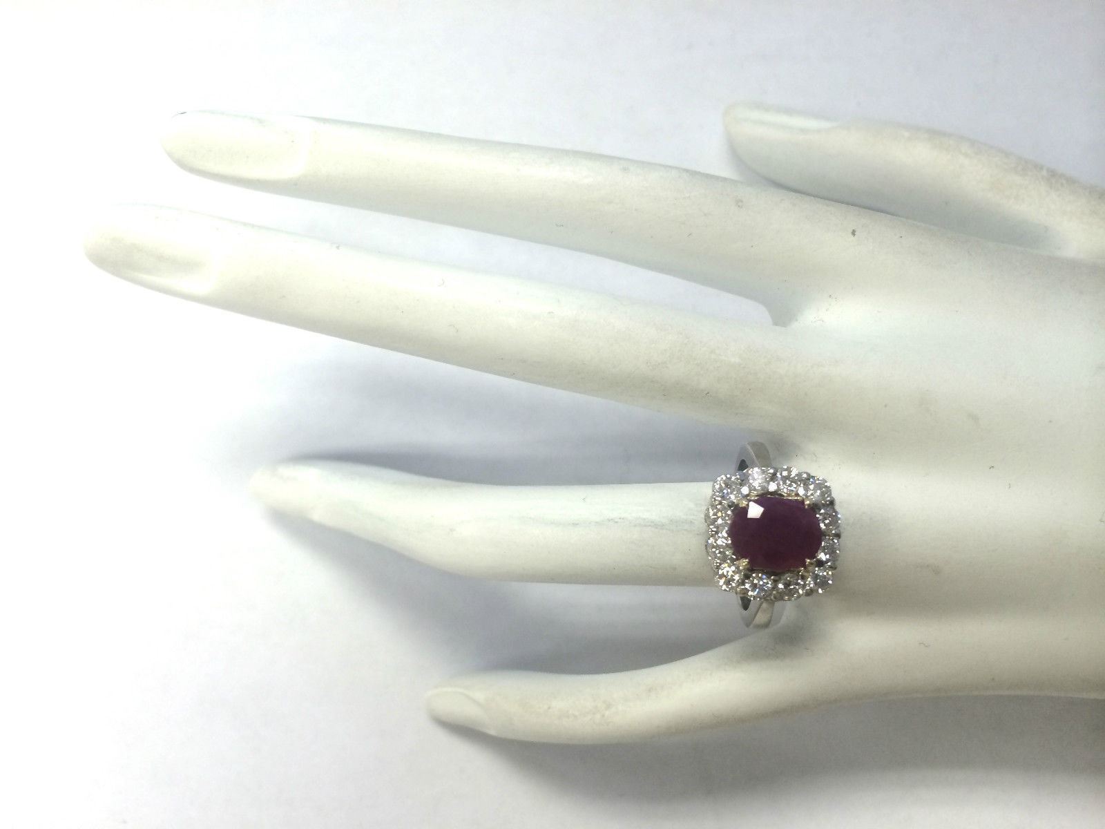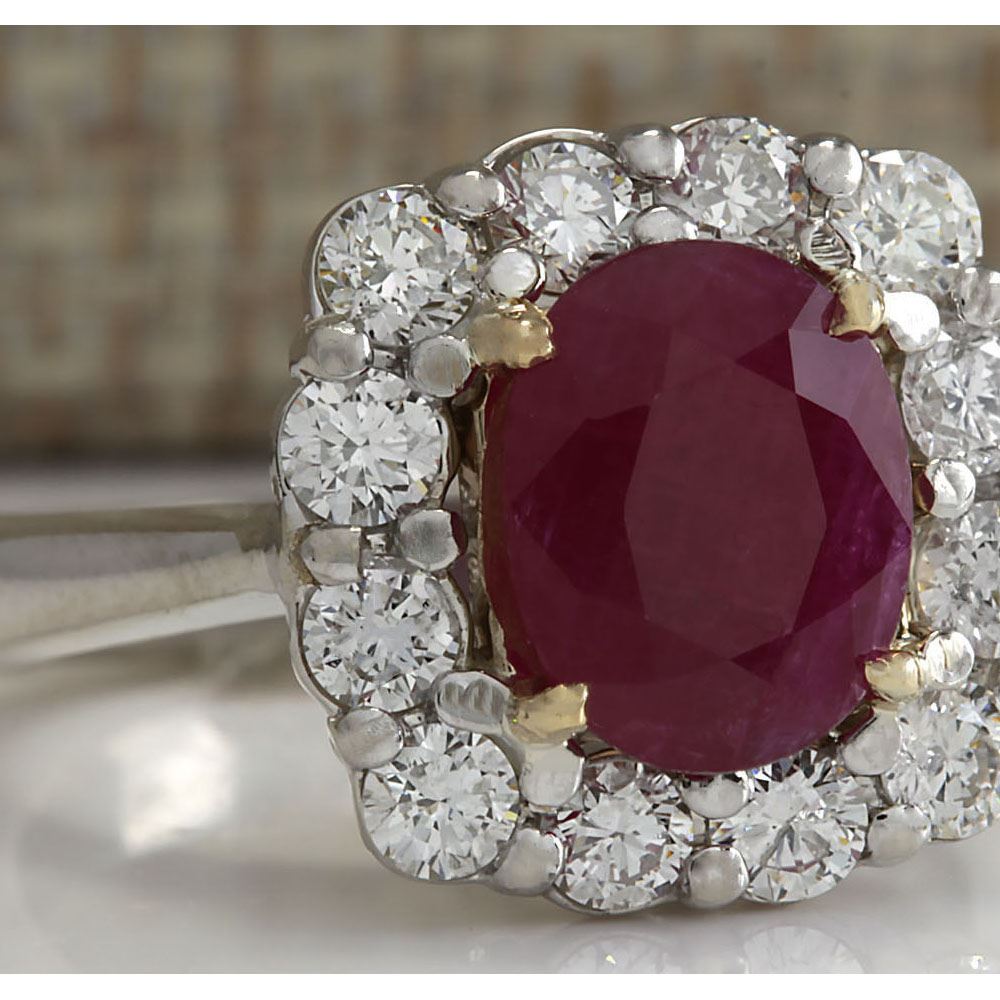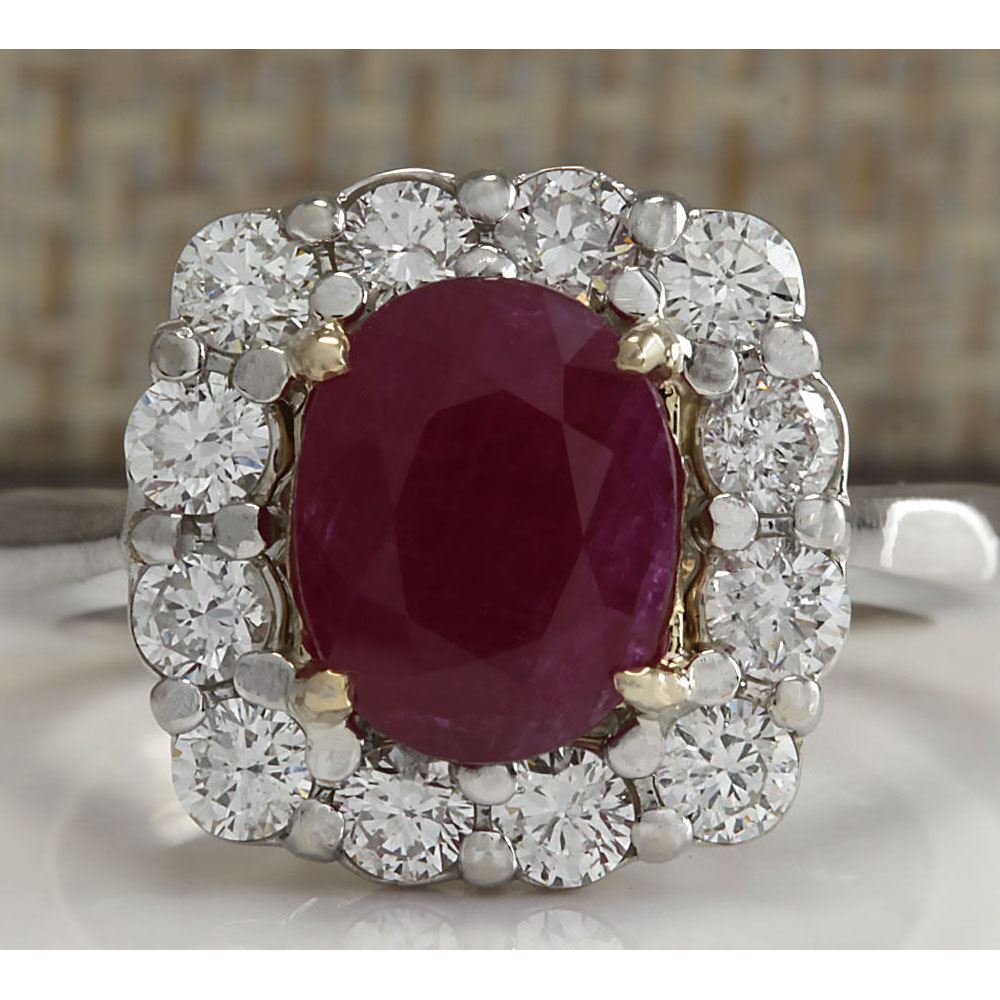 3.47 CTW Natural Ruby And Diamond Ring 14K Solid White Gold