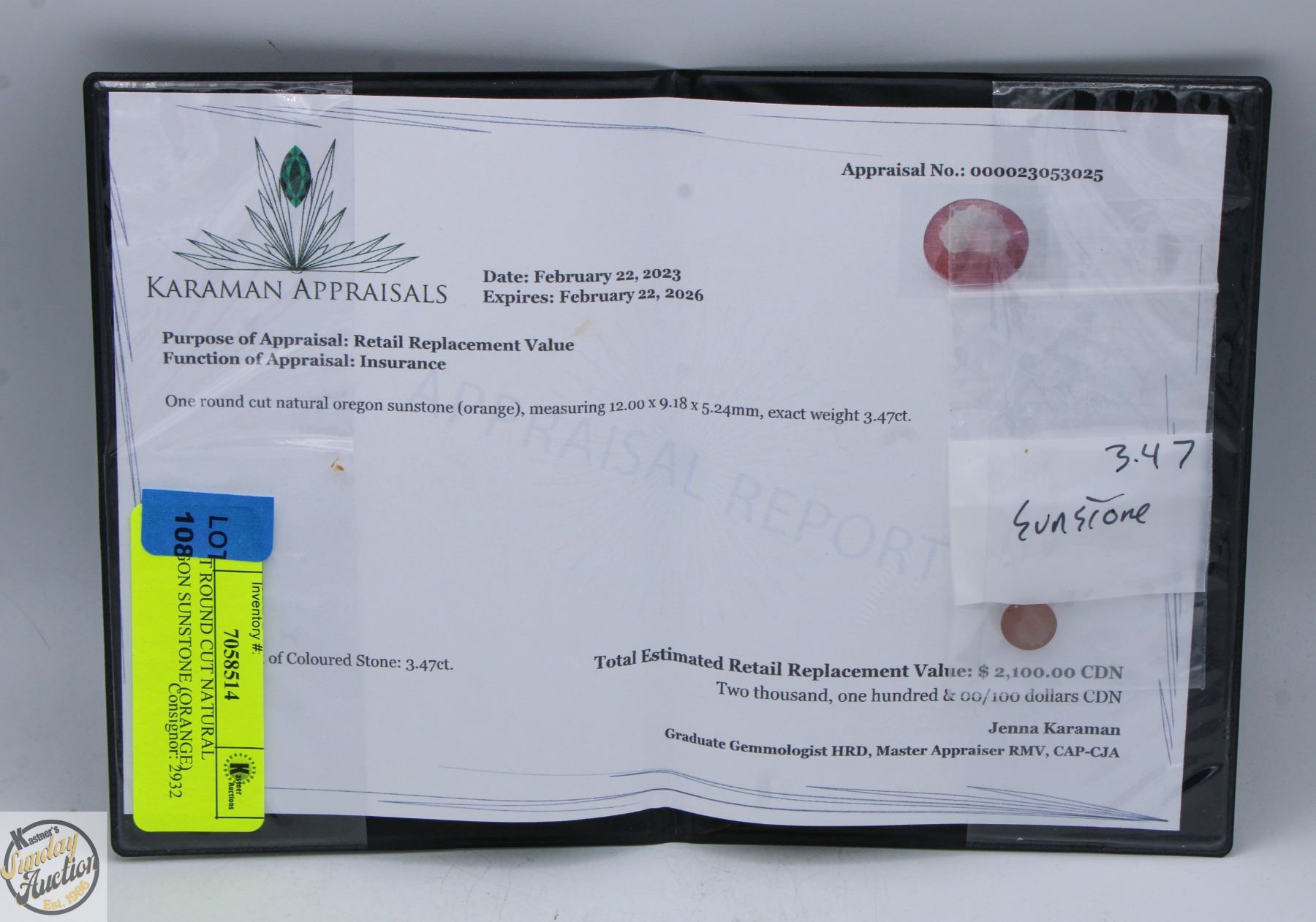 3.47CT ROUND CUT NATURAL OREGON SUNSTONE (ORANGE)