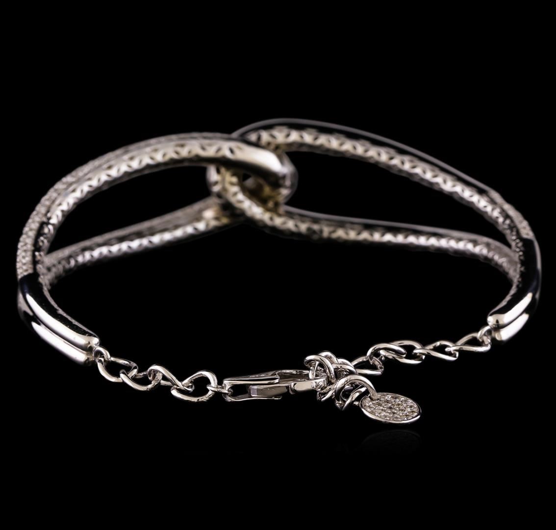 One electronically tested 14KT white gold lady's combination cast & assembled fashion cuff bracelet with a lobster claw clasp with a bright polish finish. The featured lady's cuff bracelet has an attached 4.4mm linked chain and can be worn between seven and eight inches in length, Identified with markings of 'K14'. Condition is new, good workmanship. Containing: Thirty prong set round brilliant cut diamonds, measuring 1.85 - 1.75 x 1.12mm (depth est.) approximate total weight of 30 Stones = 0.66ct. Graded in the setting. Clarity SI-1 to SI-2. Color: G - I Cut Good Two Hundred Forty-Nine prong set round brilliant cut diamonds, measuring 1.50 - 1.35 x 0.89mm (depth est.) approximate total weight of 249 Stones = 2.79ct. Graded in the setting. Clarity SI-1 to SI-2. Color: G - I Cut Good Six prong set round brilliant cut diamonds, measuring 1.10 - 1.05 x 0.67mm (depth est.) approximate total weight of 6 Stones = 0.03ct. Graded in the setting. Clarity SI-1 to SI-2. Color: G - I Cut Good. Total Weight of Diamonds 3.48ct.. Total Weight of Bracelet 19.40gm. GAS Appraised at $12,965.00.