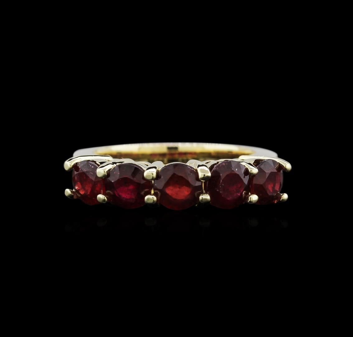 One ring featuring: 14KT yellow gold weighing 6.31 grams containing 5 rubies with a total weight of 3.48ct.