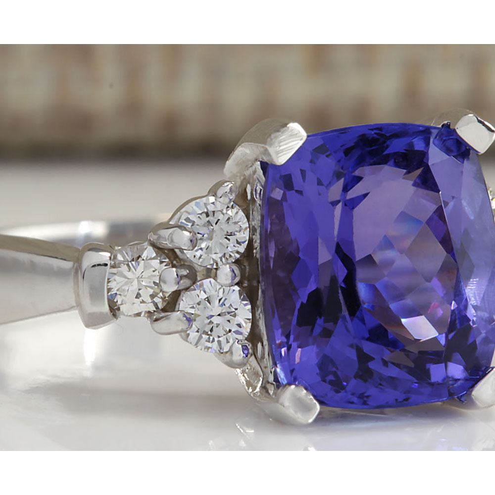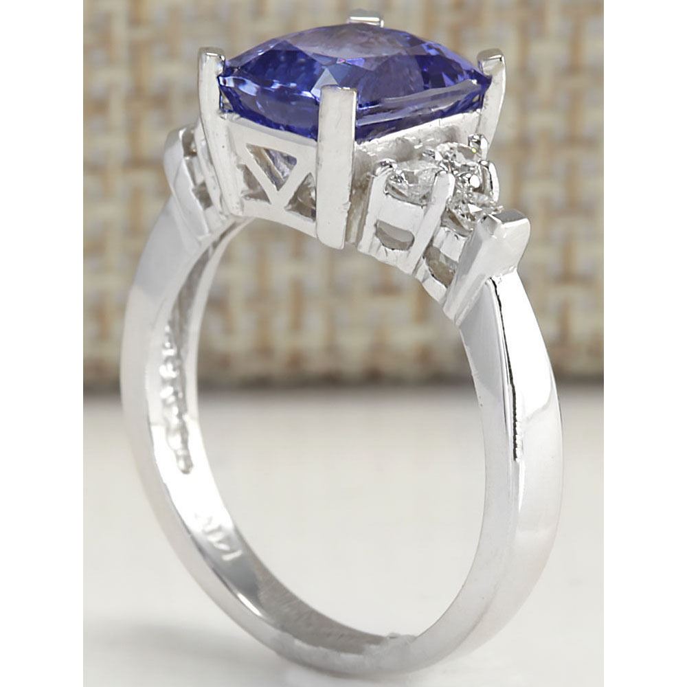 3.49 CTW Natural Blue Tanzanite And Diamond Ring 18K Solid White Gold
