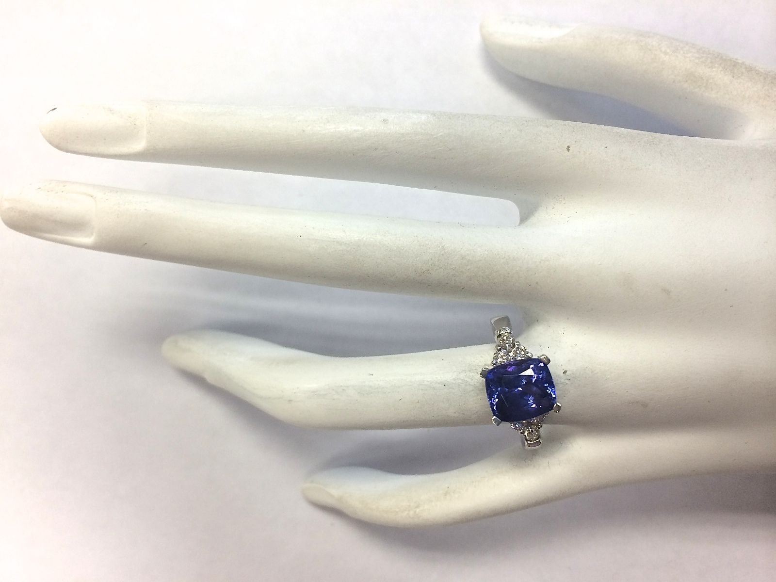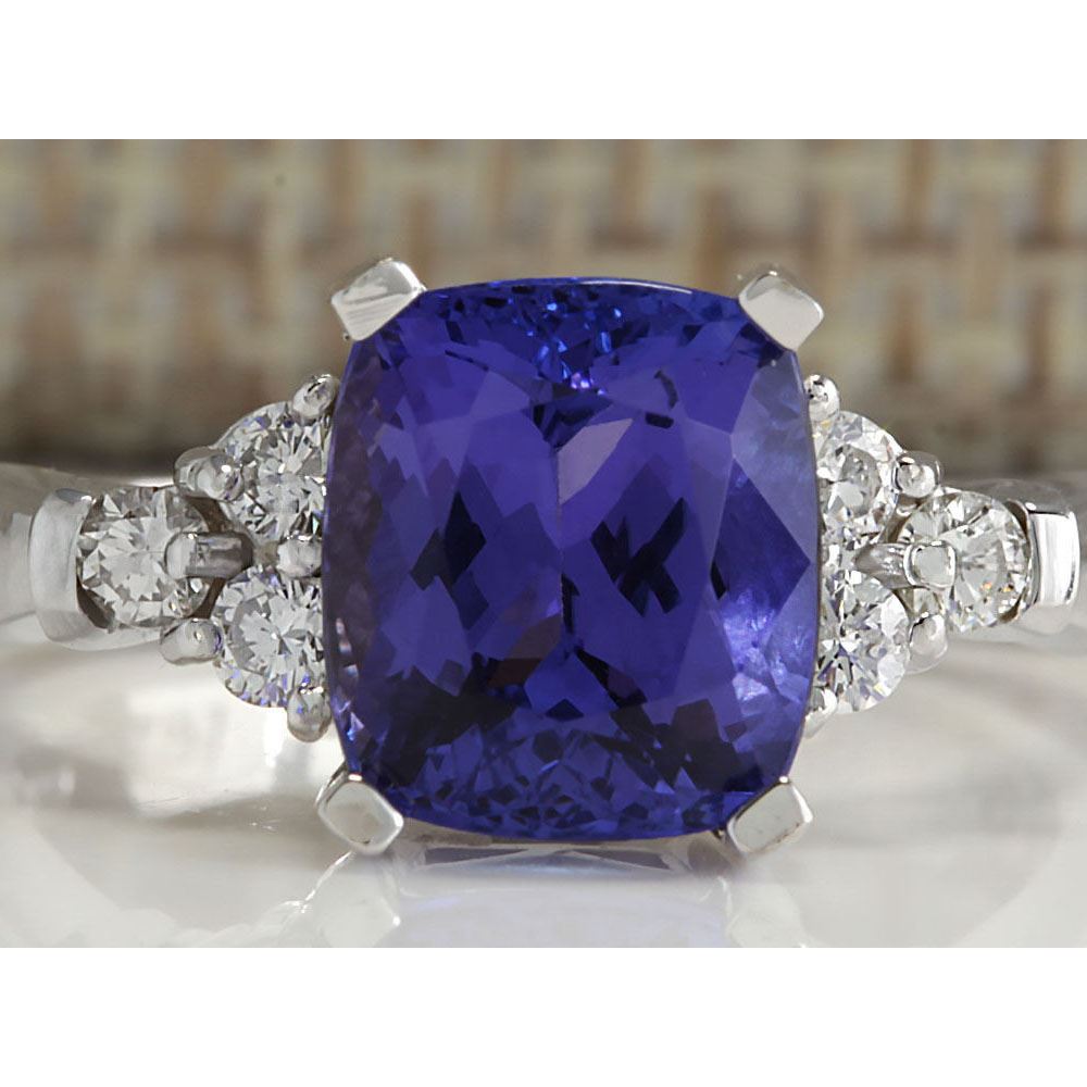 3.49 CTW Natural Blue Tanzanite And Diamond Ring 18K Solid White Gold