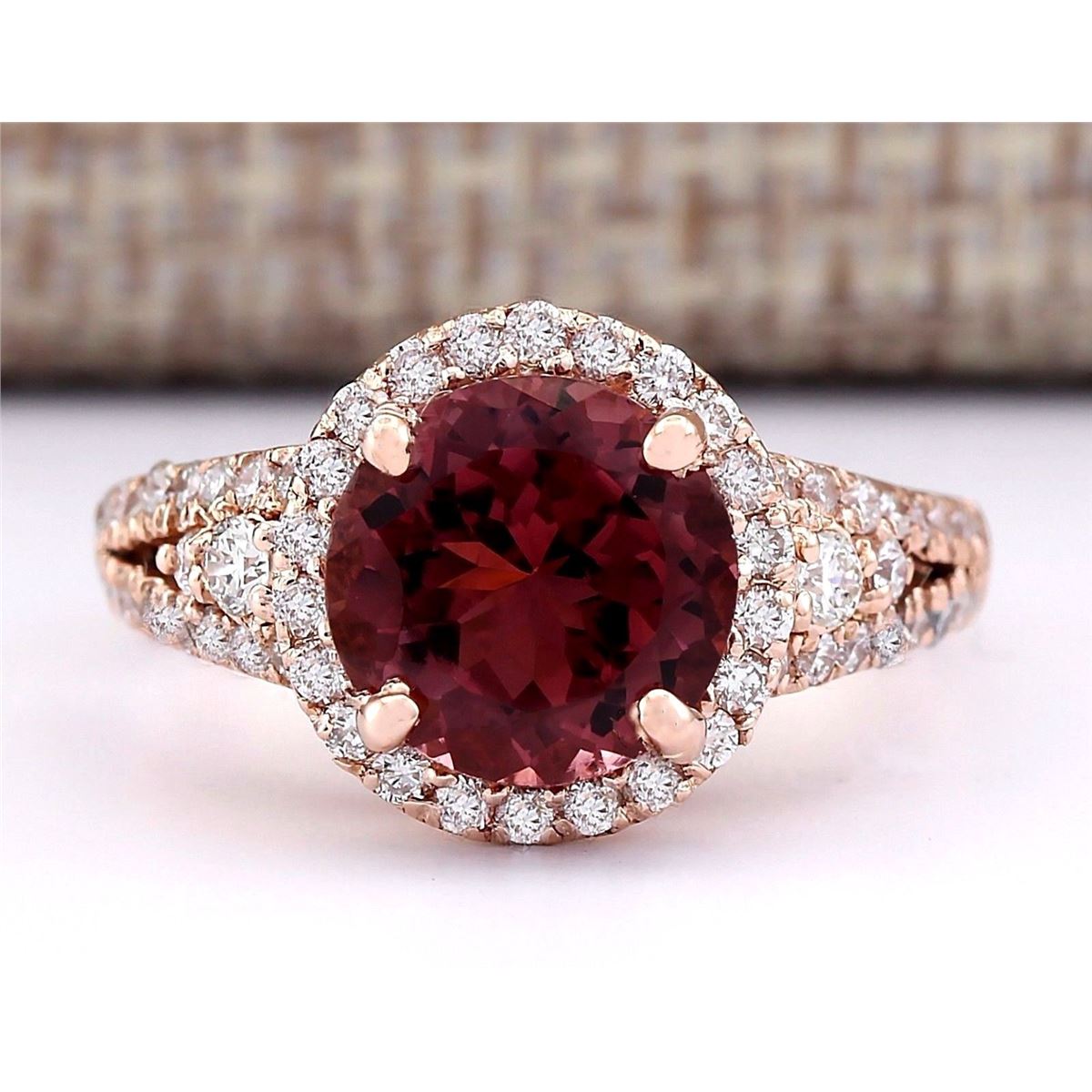 Stamped: 14K Ring Size: 6.75 Total Ring Weight: 5 Grams Diamond Weight: Total natural diamond weight is .85carat. SI1-SI2 clarity / G-H color Gemstone Weight: Total Natural Tourmaline Weight is 2.64ctw (Measures: 8.92x8.92mm) Main Stone Color: Pink Face Measures: 11.87x11.87mm SKU: [703778]