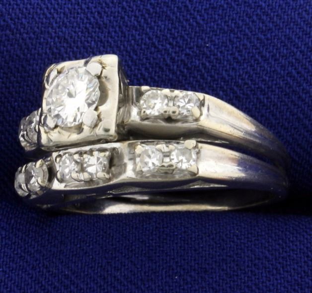 14K white gold, the center diamond is .45ct, surrounded by ten .03ct diamonds, all SI clarity, G color. The diamonds are a great cut and sparkle. Size 7 5.7g