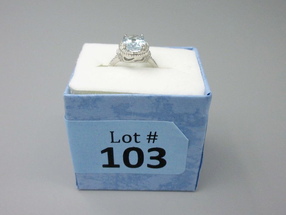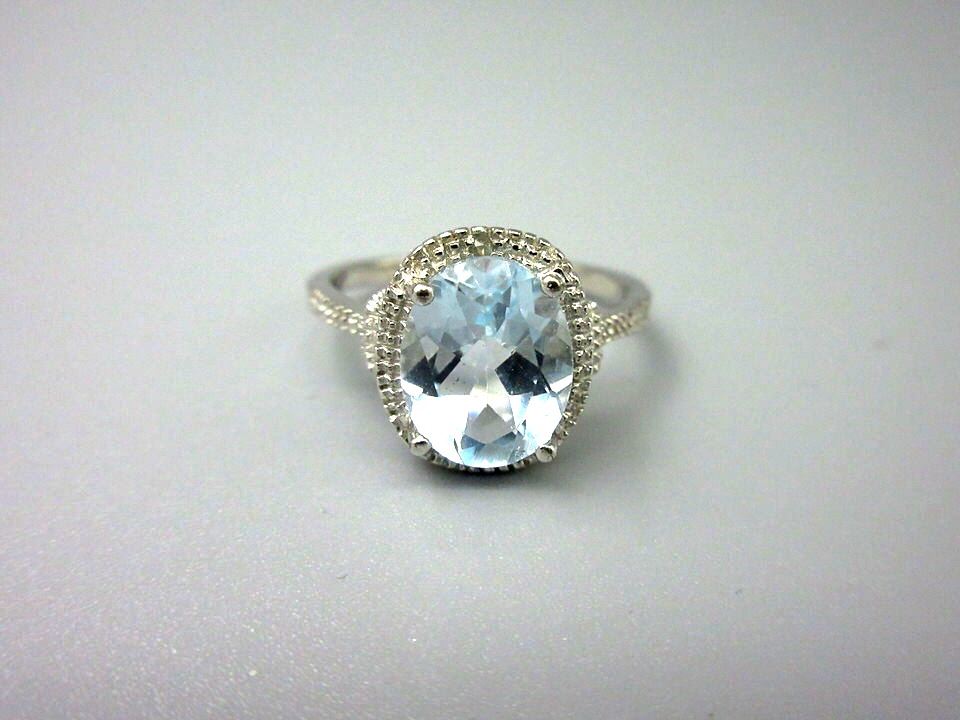 Sterling Silver. Oval cut 10 x 8 mm topaz with 2 side diamonds. Includes $375 certificate.