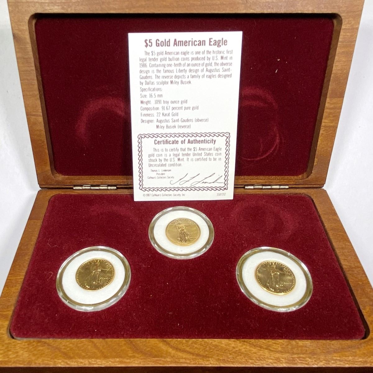 (3) $5 Gold Half Eagles 1/10oz - w/ Cert BU