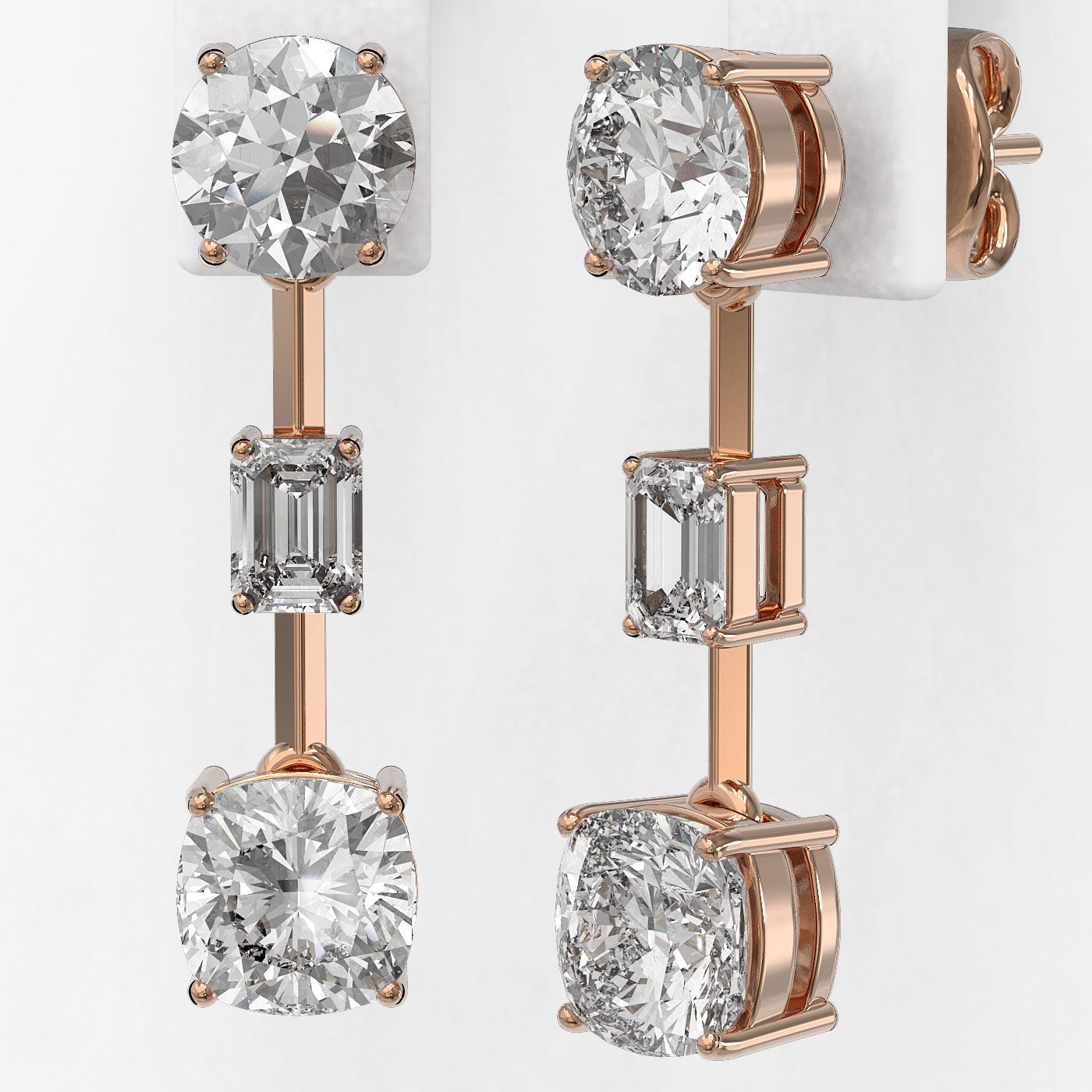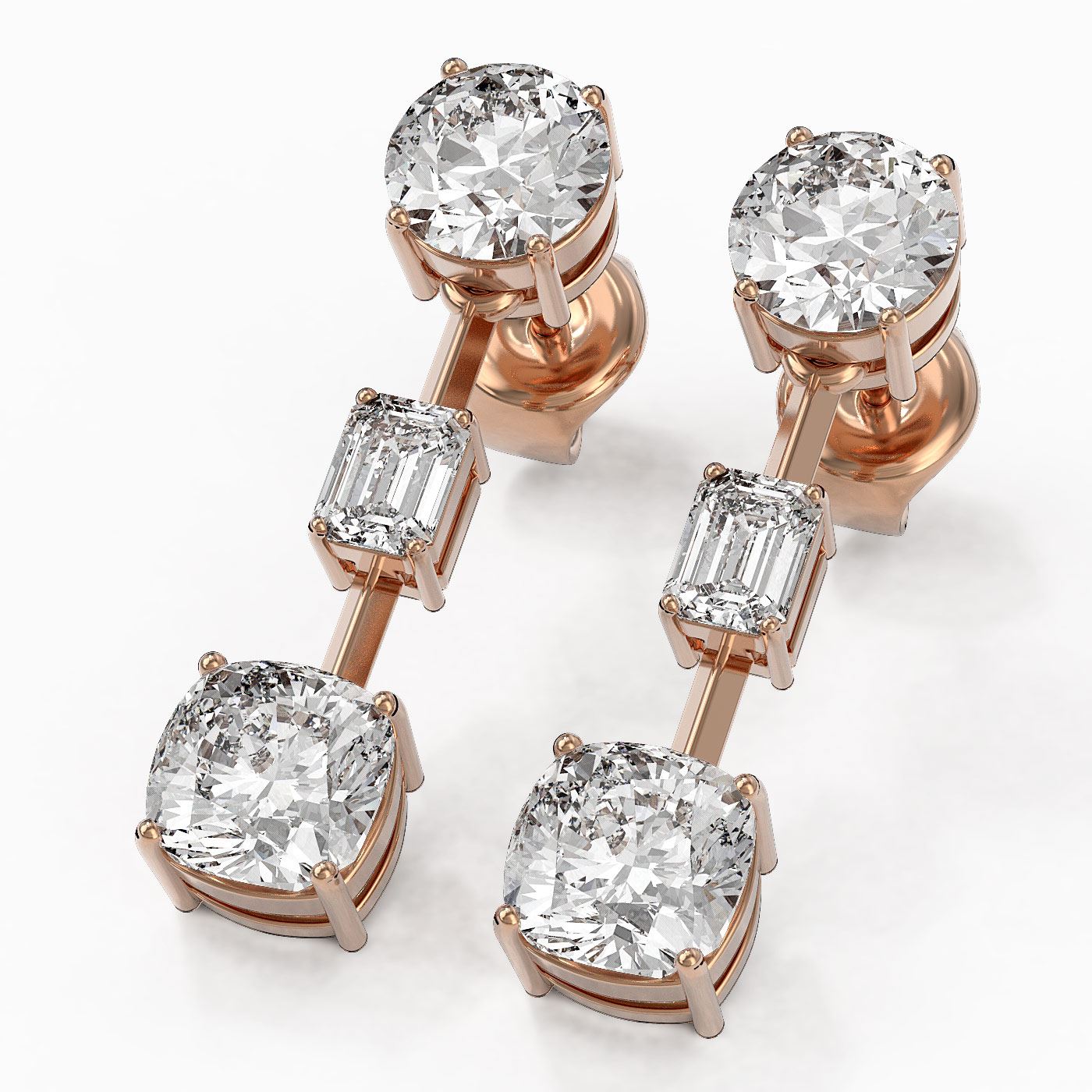 SKU: 48604 ---- 3.5 ctw Cushion Cut Diamond Designer Earrings 18K Rose Gold