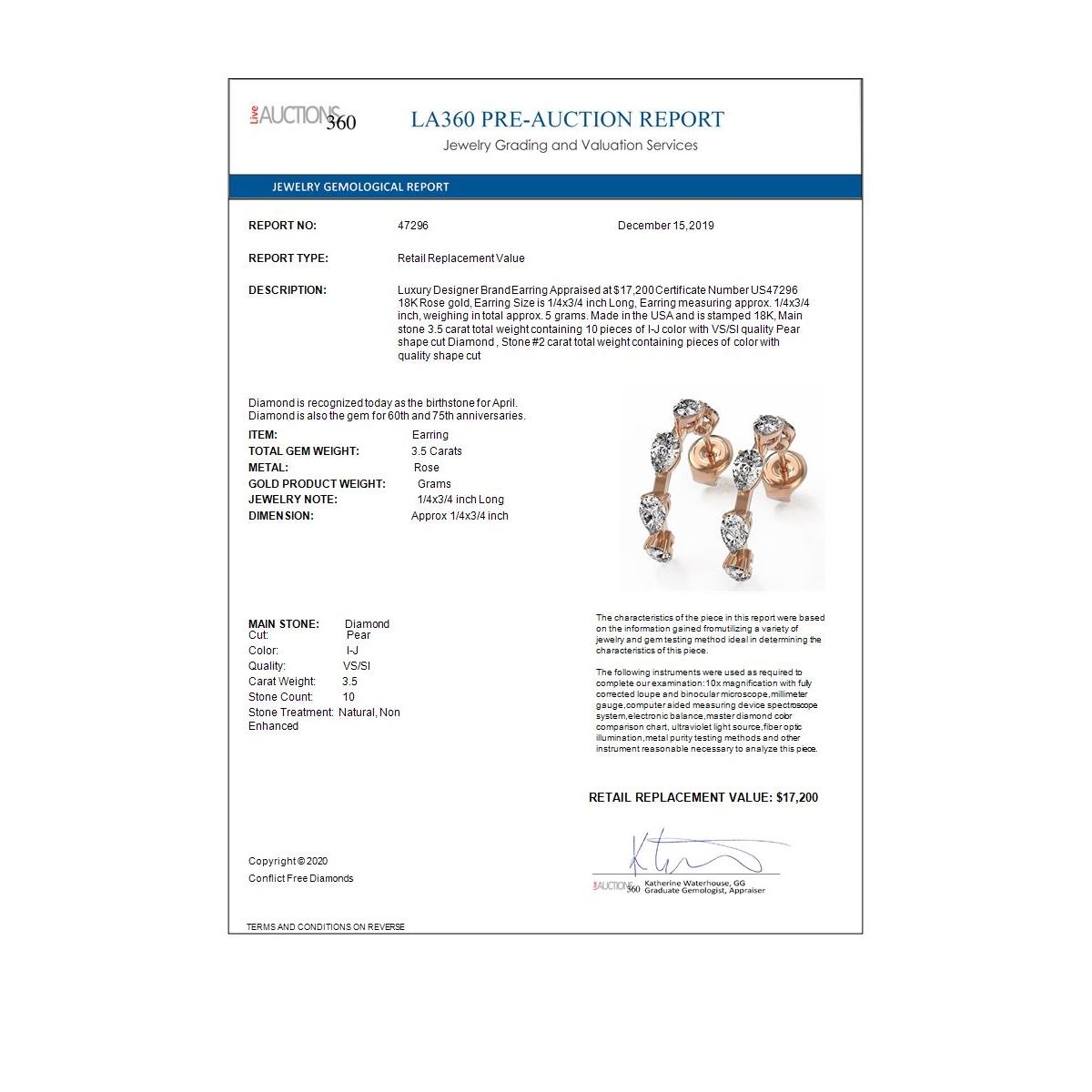 All sales are final, placing a bid is a legally binding obligation. All lots are sold as is, where is, with all the faults, imperfections, omissions and errors in the written description, estimates, appraisals, graphics and photography. USJL is not responsible for any errors or omissions in the description, graphics or photography provided or in the bidding software. Due diligence to verify the condition and description of a lot is the sole responsibility of the Bidder prior to placing any bid. Returns may only be made with the advance written authorization of USJL and are in USJL's sole discretion to approve. To request a return you must provide a written request fully explaining the basis for the return no later than 4 days after your receipt of the lot. Under no circumstances will any amounts other than the winning bid amount be refunded. A restocking charge of 19% of the full invoice amount may apply in USJL 's sole discretion. Any allowed returns must be received in exactly the same condition as when originally shipped to Buyer, or they will be returned to buyer at Buyer's cost. Any unauthorized returns will be refused. DELIVERY REFUSAL OF ITEMS SHIPPED BY US JEWELRY LIQUIDATION TO THE BIDDER CONSTITUTES AN UNAUTHORIZED RETURN IN DIRECT VIOLATION OF THESE GENERAL TERMS AND CONDITIONS.