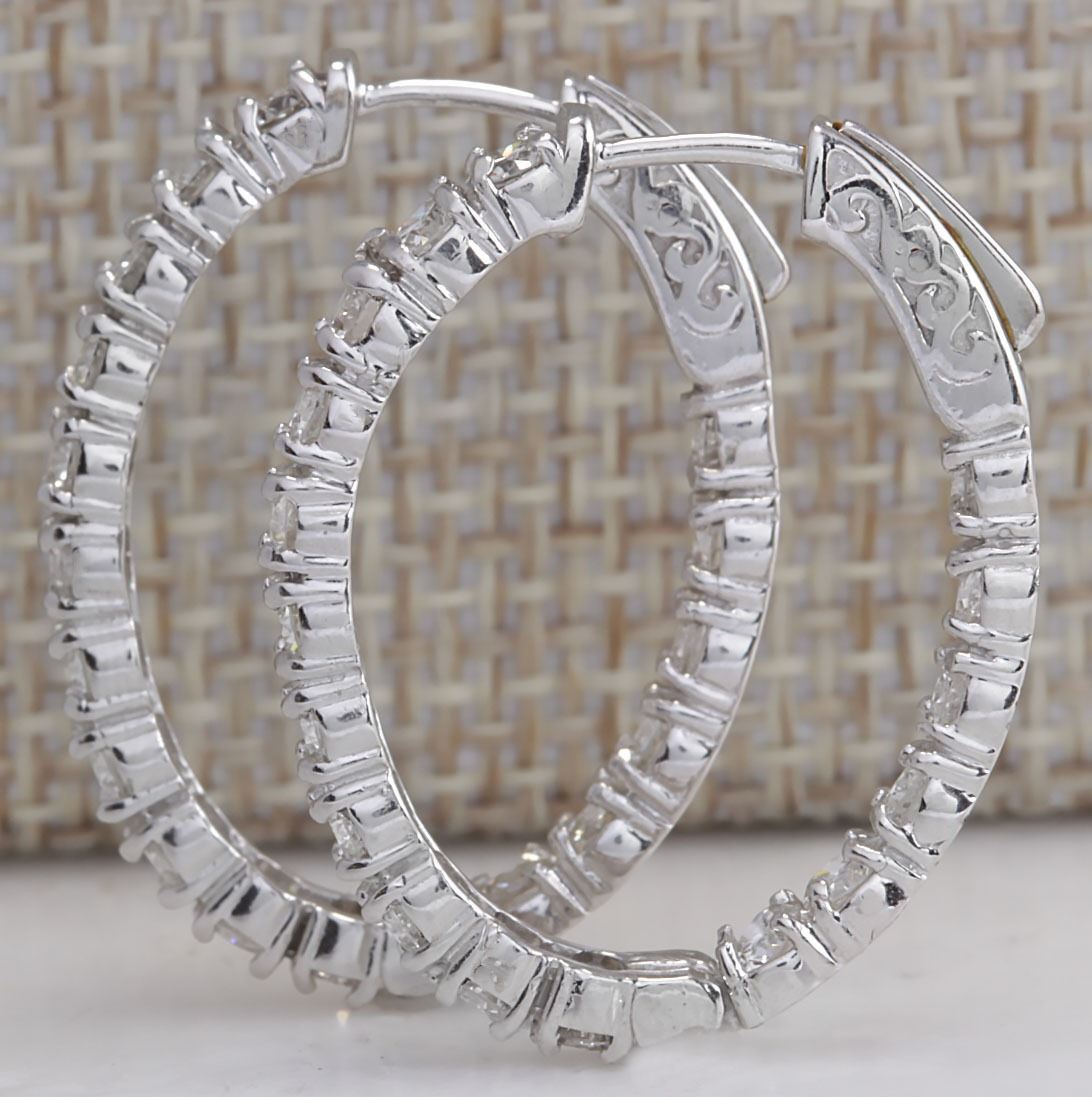 3.50 CTW Natural Diamond Hoop Earrings 14K Solid White Gold