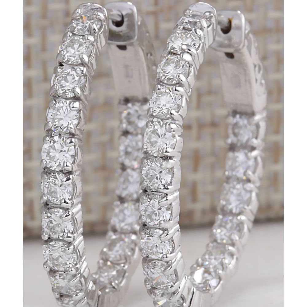 3.50 CTW Natural Diamond Hoop Earrings 18K Solid White Gold