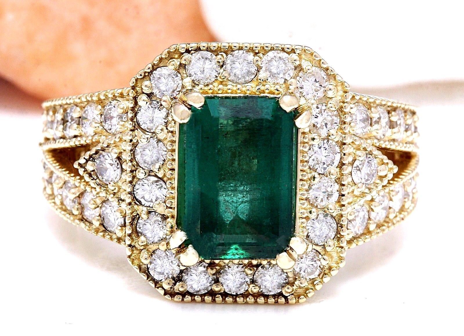 3.50 Carat Natural Emerald 18K Solid Yellow Gold Diamond Ring