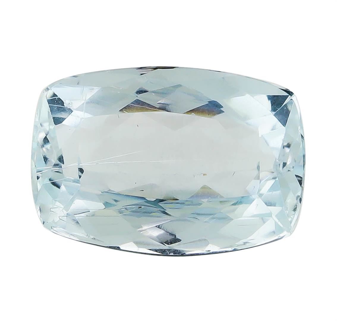 One natural rectangle cushion cut aquamarine with an exact weight of 3.50ct., clarity is slightly included, slightly grayish greenish blue. Gemological Appraisals Services estimates the retail value at $1225 GAS Appraised.