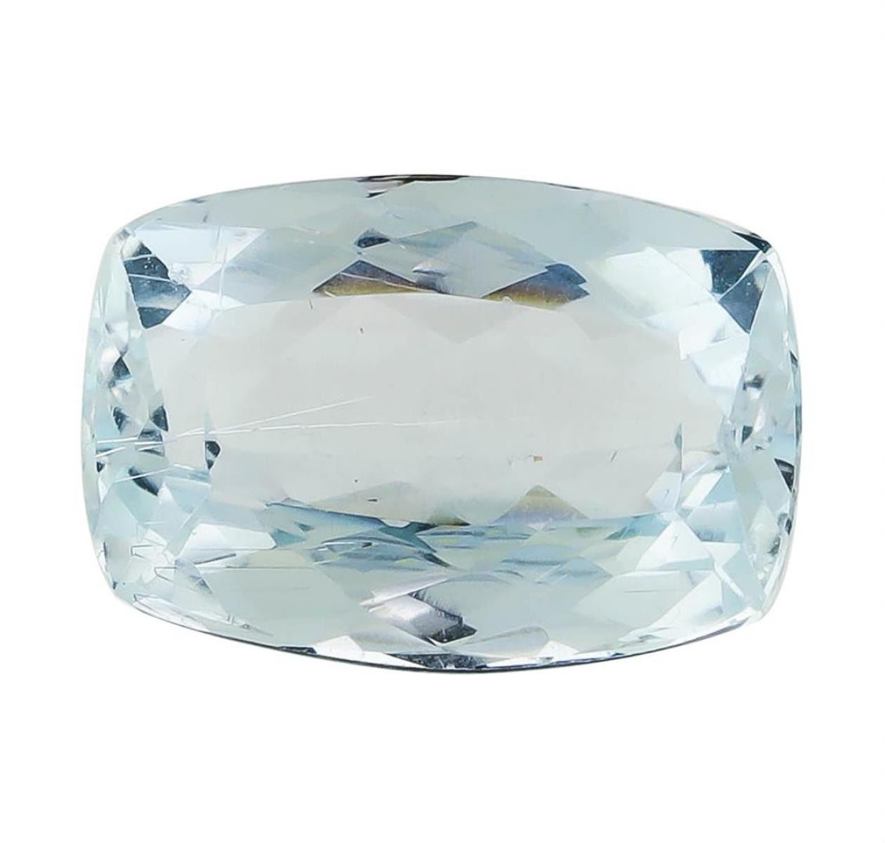 One natural rectangle cushion cut aquamarine with an exact weight of 3.50ct., clarity is slightly included, slightly grayish greenish blue. Gemological Appraisals Services estimates the retail value at $1225 GAS Appraised.