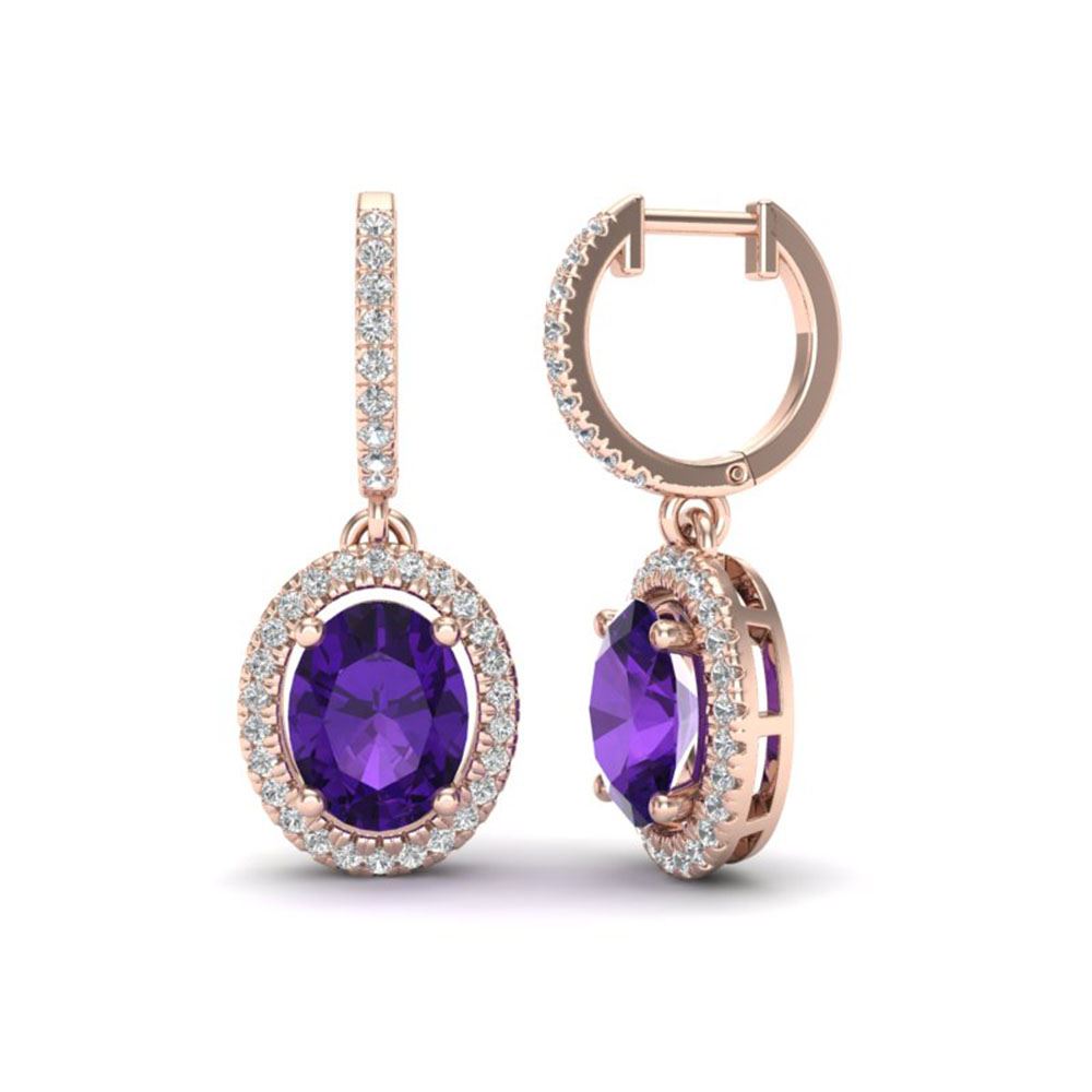 REF-83K6Y - SKU: 20307 ---- 3.50 ctw Amethyst & Micro Pave VS/SI Diamond Earrings 14k Rose Gold
