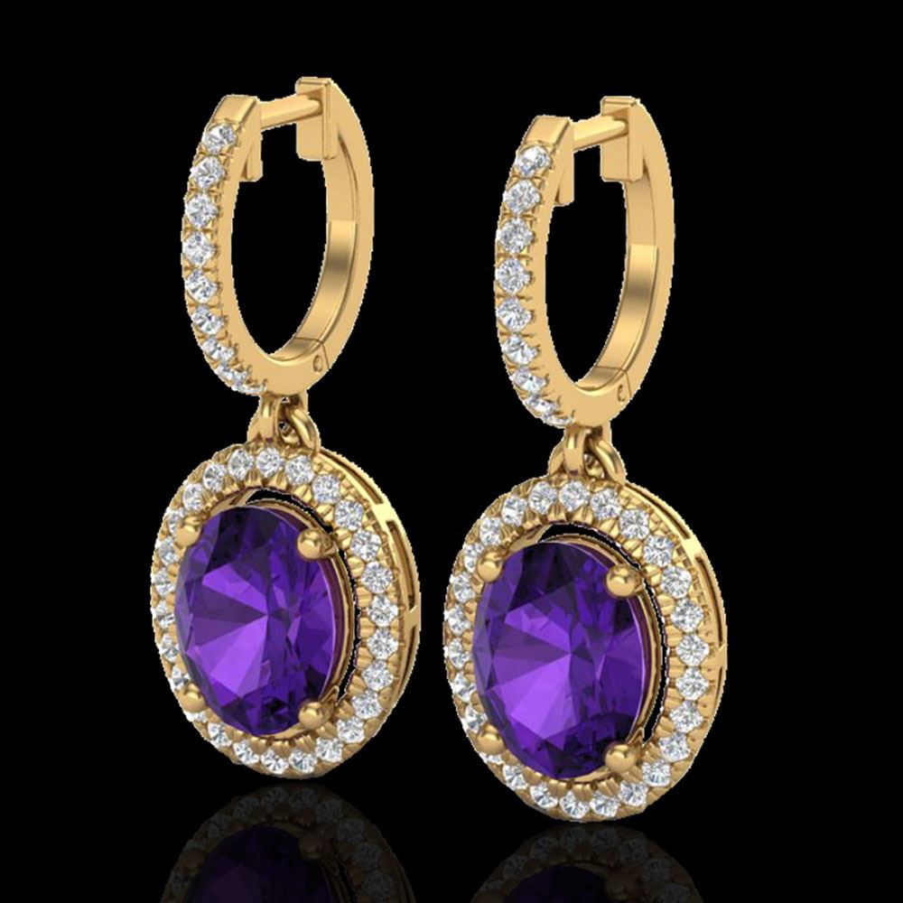 REF-99R8K - SKU: 20309 ---- 3.50 ctw Amethyst & Micro Pave VS/SI Diamond Earrings 18k Yellow Gold