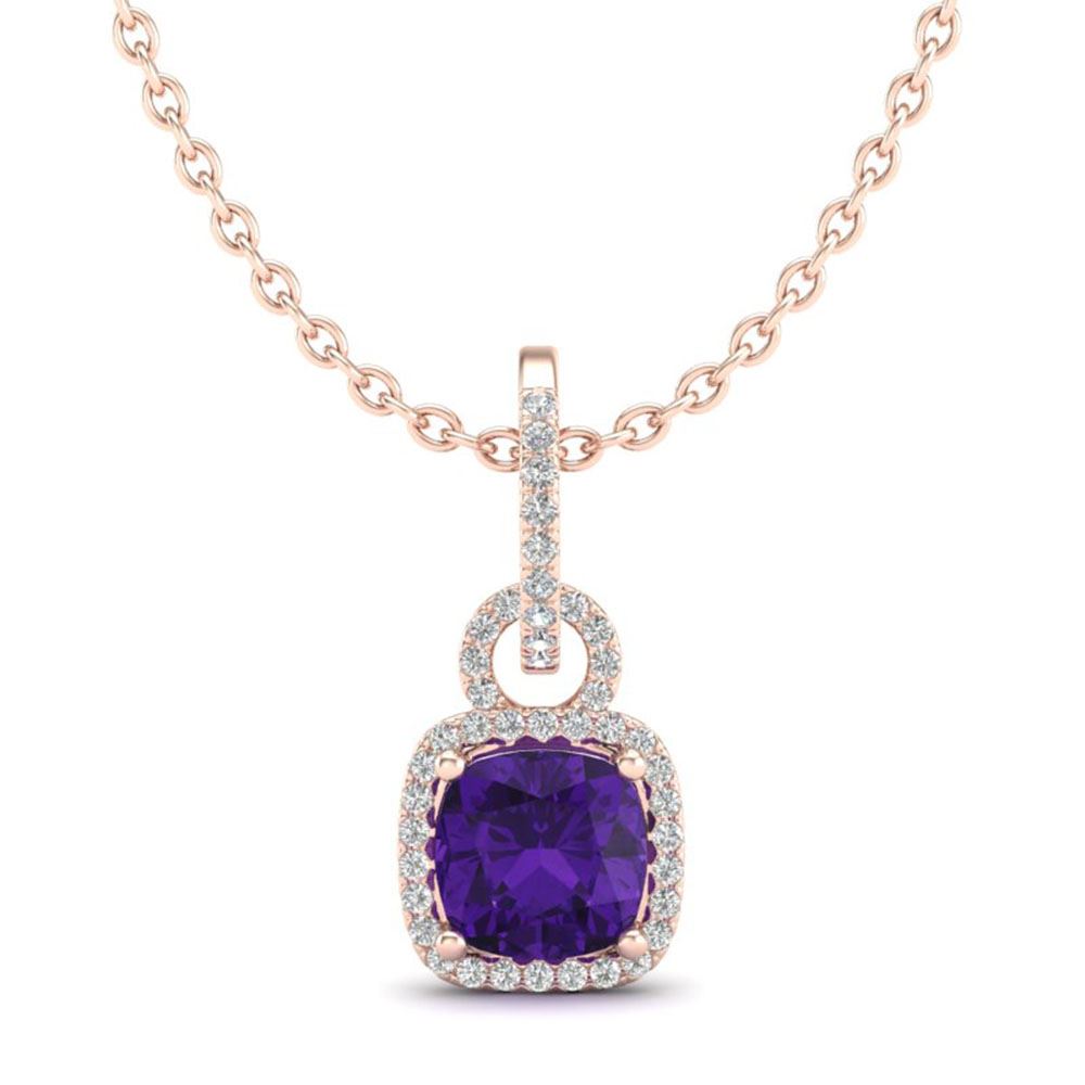 REF-40X9A - SKU: 22976 ---- 3.50 ctw Amethyst & Micro VS/SI Diamond Necklace 14k Rose Gold