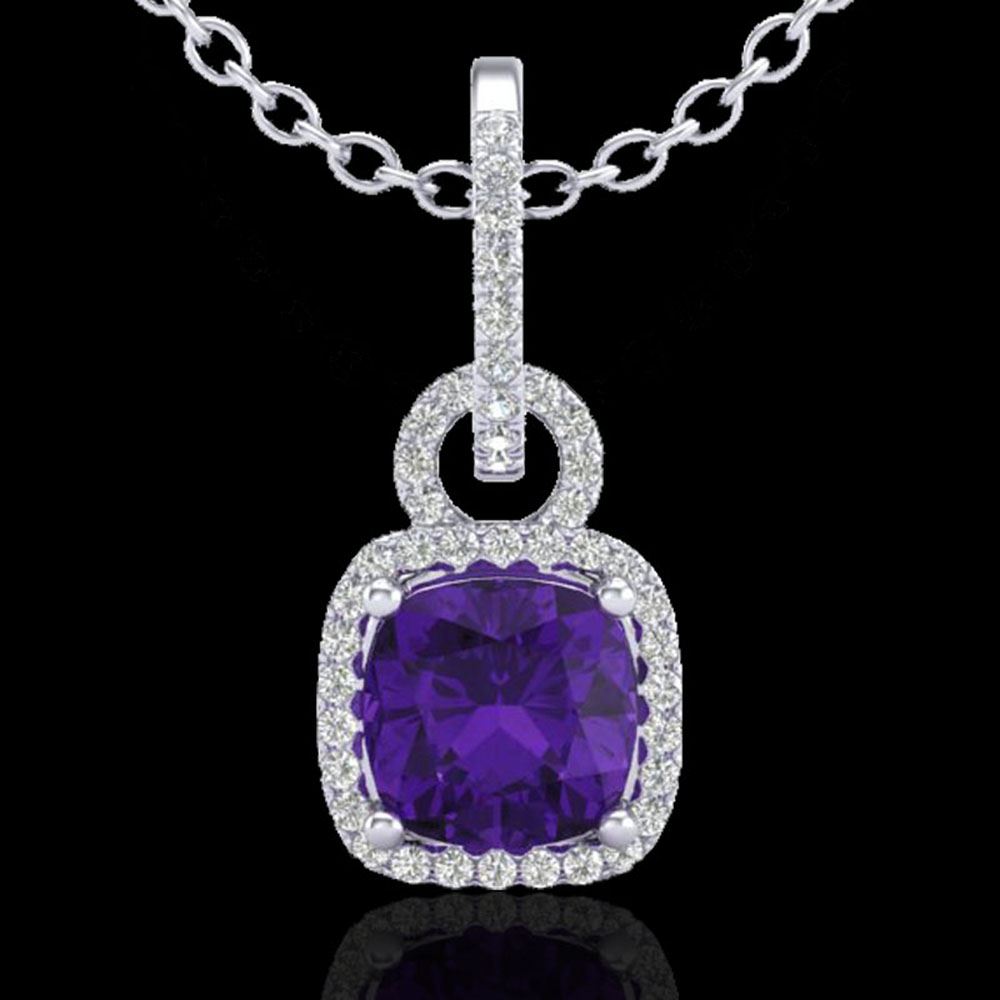 REF-49A2N - SKU: 22975 ---- 3.50 ctw Amethyst & Micro VS/SI Diamond Necklace 18k White Gold