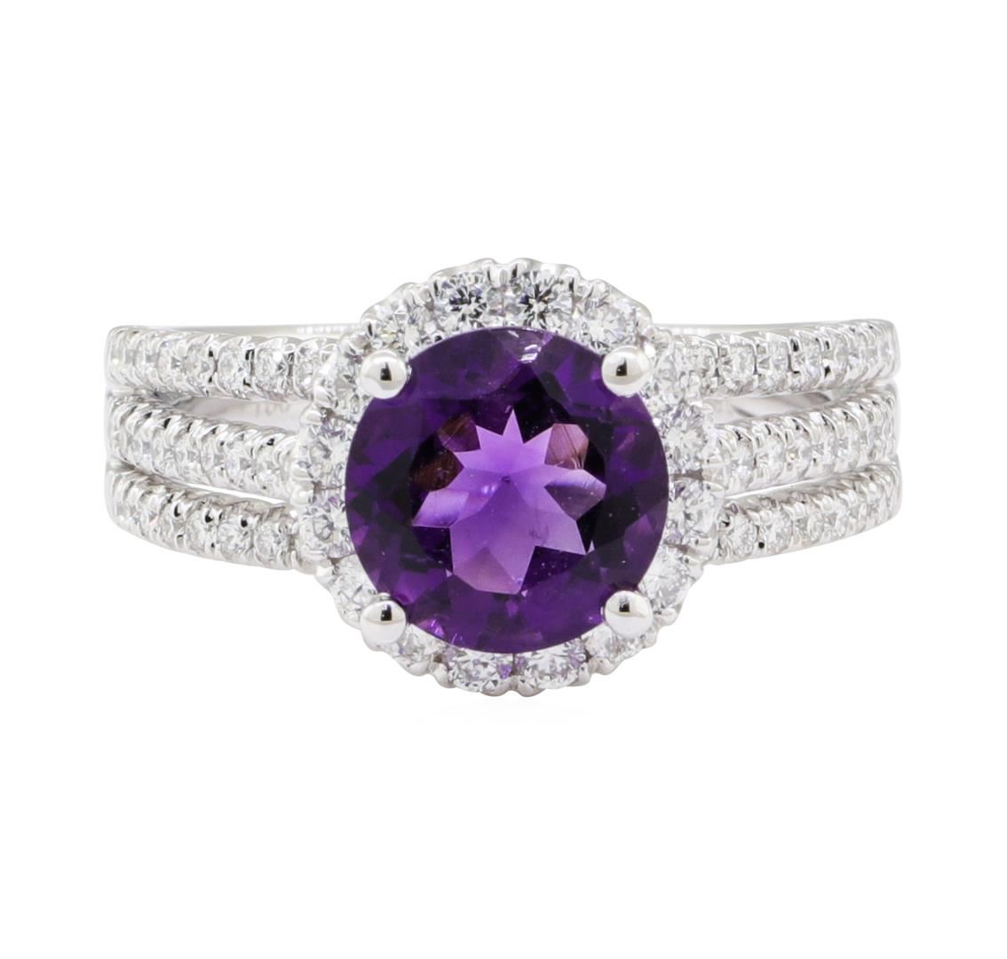 One ring featuring: 18KT white gold weighing 5.6 grams containing one amethyst weighing 2.00ct and diamonds weighing 1.50ctw.