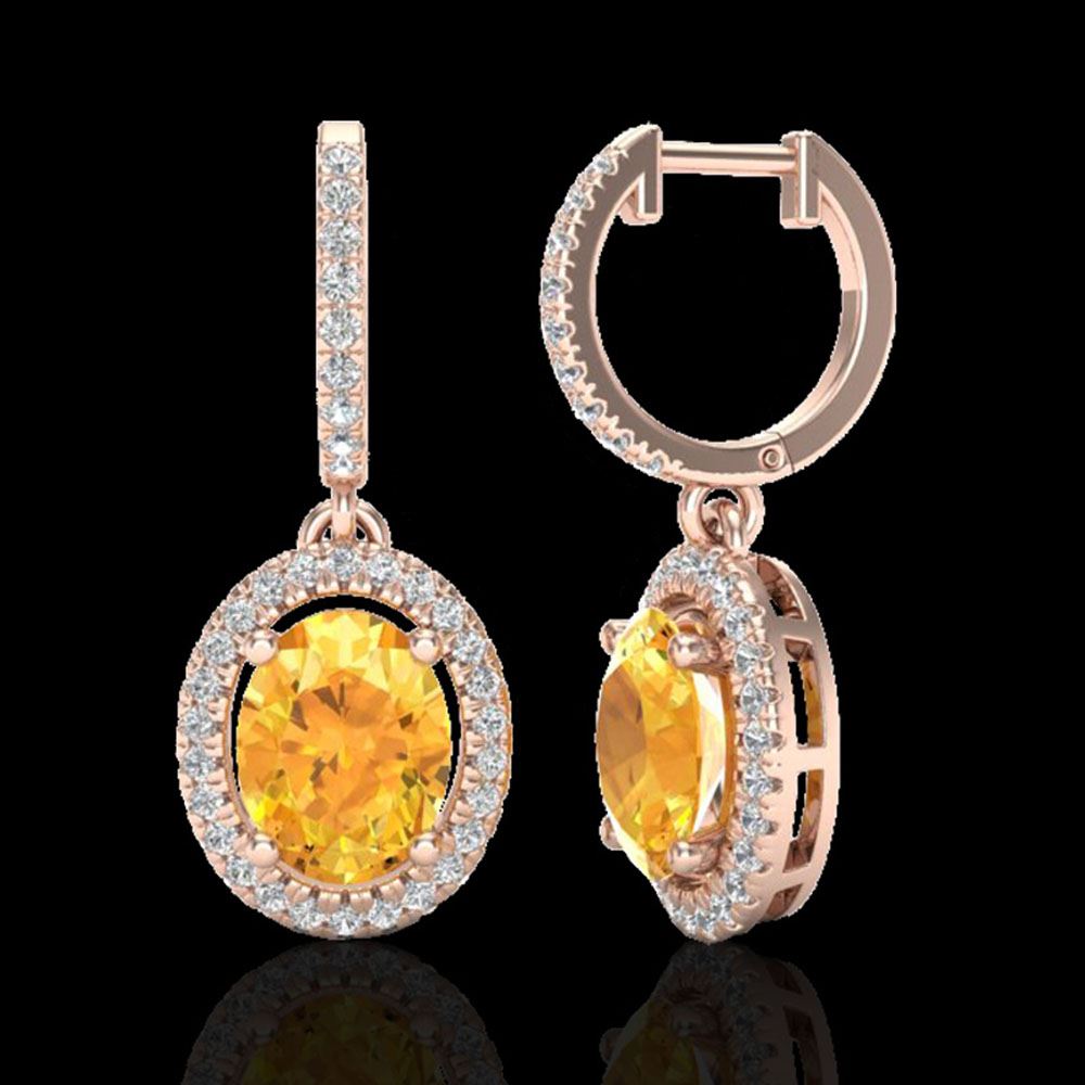 REF-83N6F - SKU: 20319 ---- 3.50 ctw Citrine & Micro Pave VS/SI Diamond Earrings 14k Rose Gold