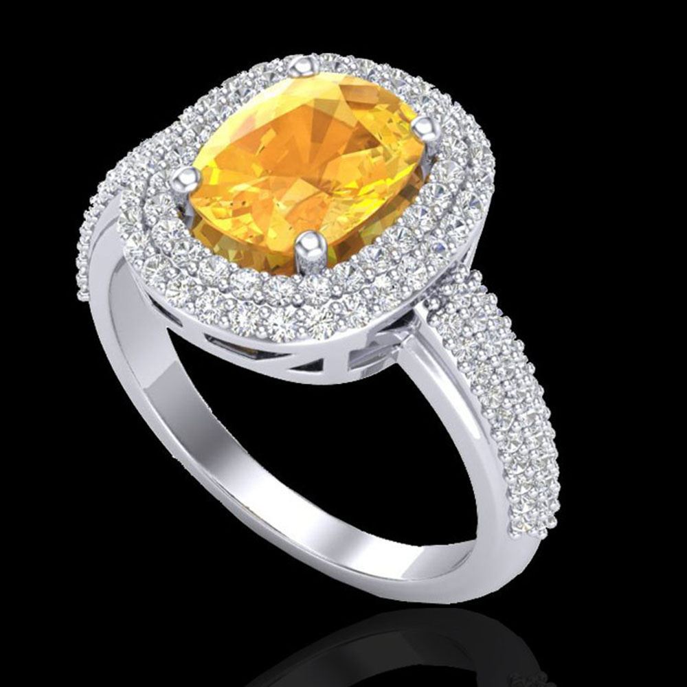 REF-98A2N - SKU: 20715 ---- 3.50 ctw Citrine & Micro Pave VS/SI Diamond Ring 14k White Gold