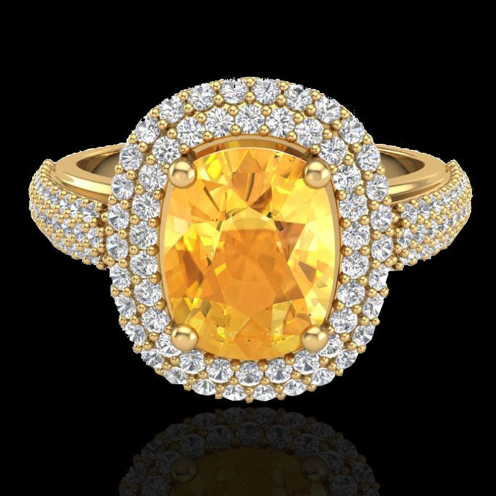 REF-98F2M - SKU: 20716 ---- 3.50 ctw Citrine & Micro Pave VS/SI Diamond Ring 14k Yellow Gold
