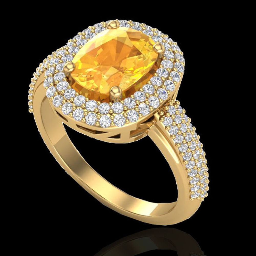 REF-98F2M - SKU: 20716 ---- 3.50 ctw Citrine & Micro Pave VS/SI Diamond Ring 14k Yellow Gold