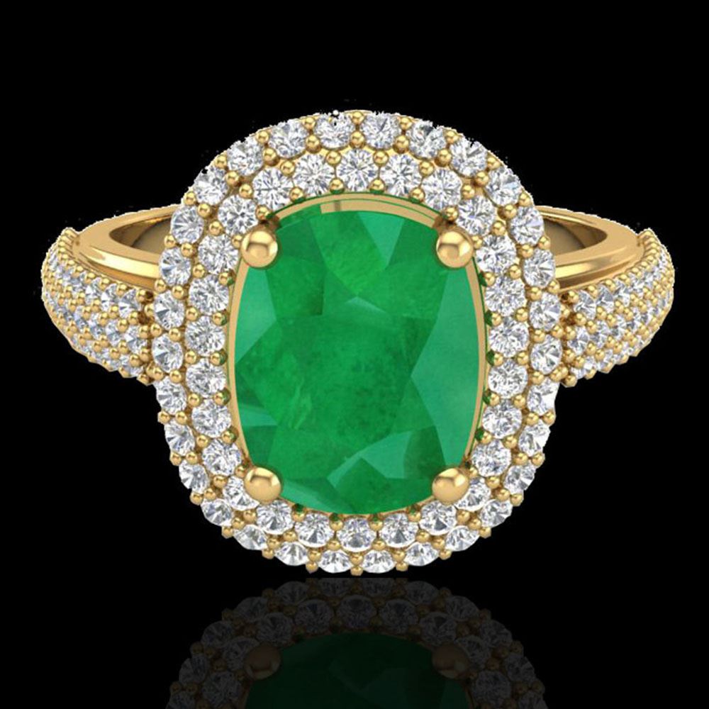 REF-143K6Y - SKU: 20718 ---- 3.50 ctw Emerald & Micro Pave VS/SI Diamond Ring 18k Yellow Gold