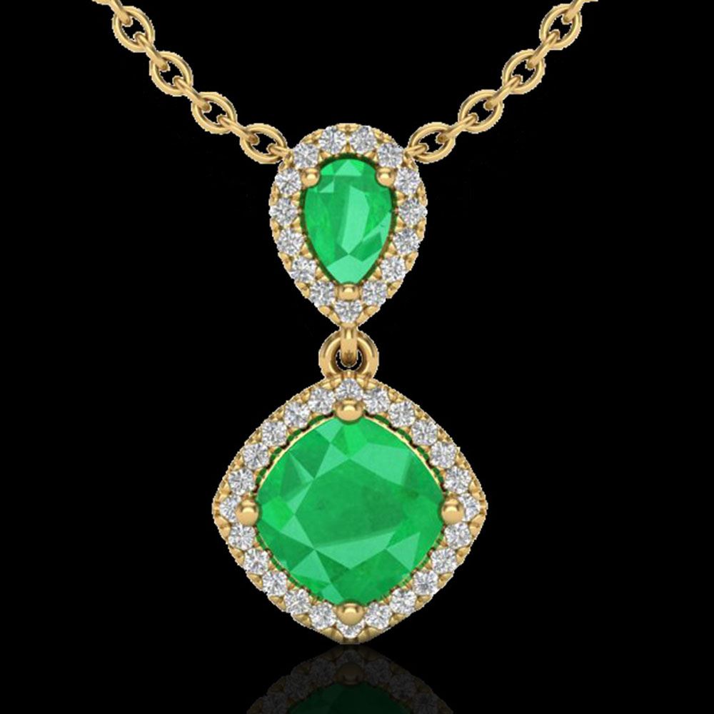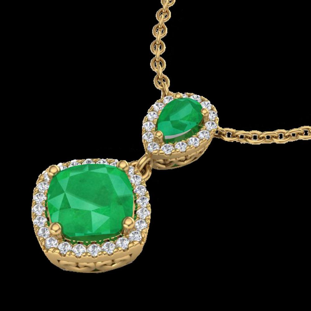 REF-55Y2X - SKU: 20545 ---- 3.50 ctw Emerald & Micro VS/SI Diamond Necklace Designer 10k Yellow Gold