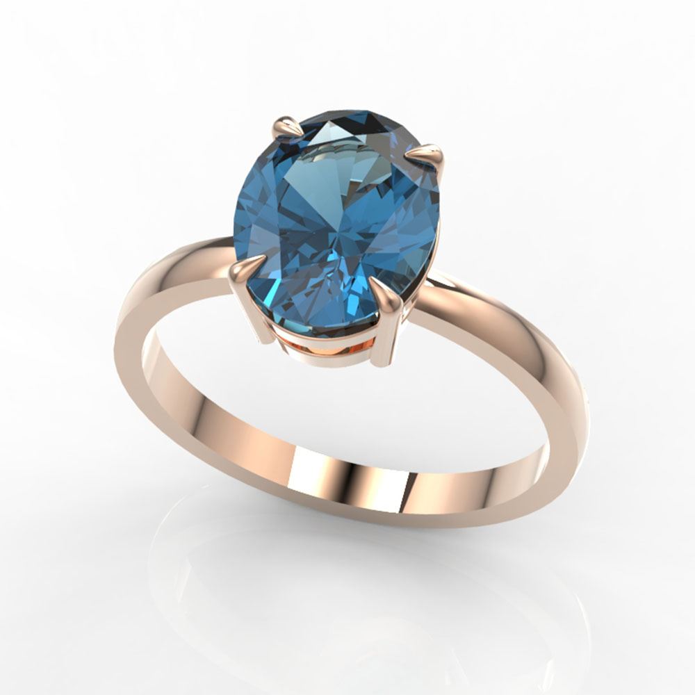 REF-18F4M - SKU: 22068 ---- 3.50 ctw London Blue Topaz Designer Solitaire Ring 14k Rose Gold